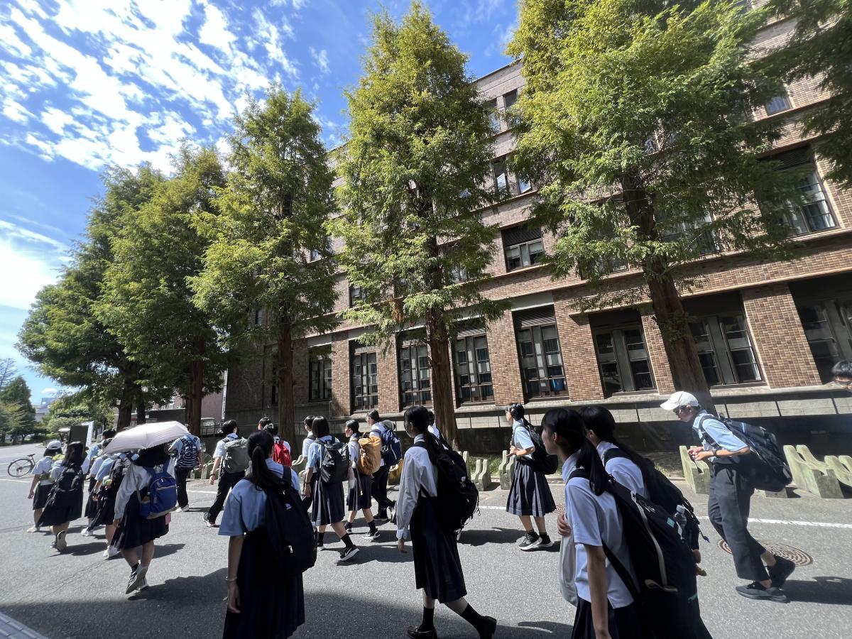 国内研修旅行最終日は、朝、ホテルから歩いて京都御苑を横切り、鴨川の飛び石をつたって京都大学吉田キャンパスを訪問しました。