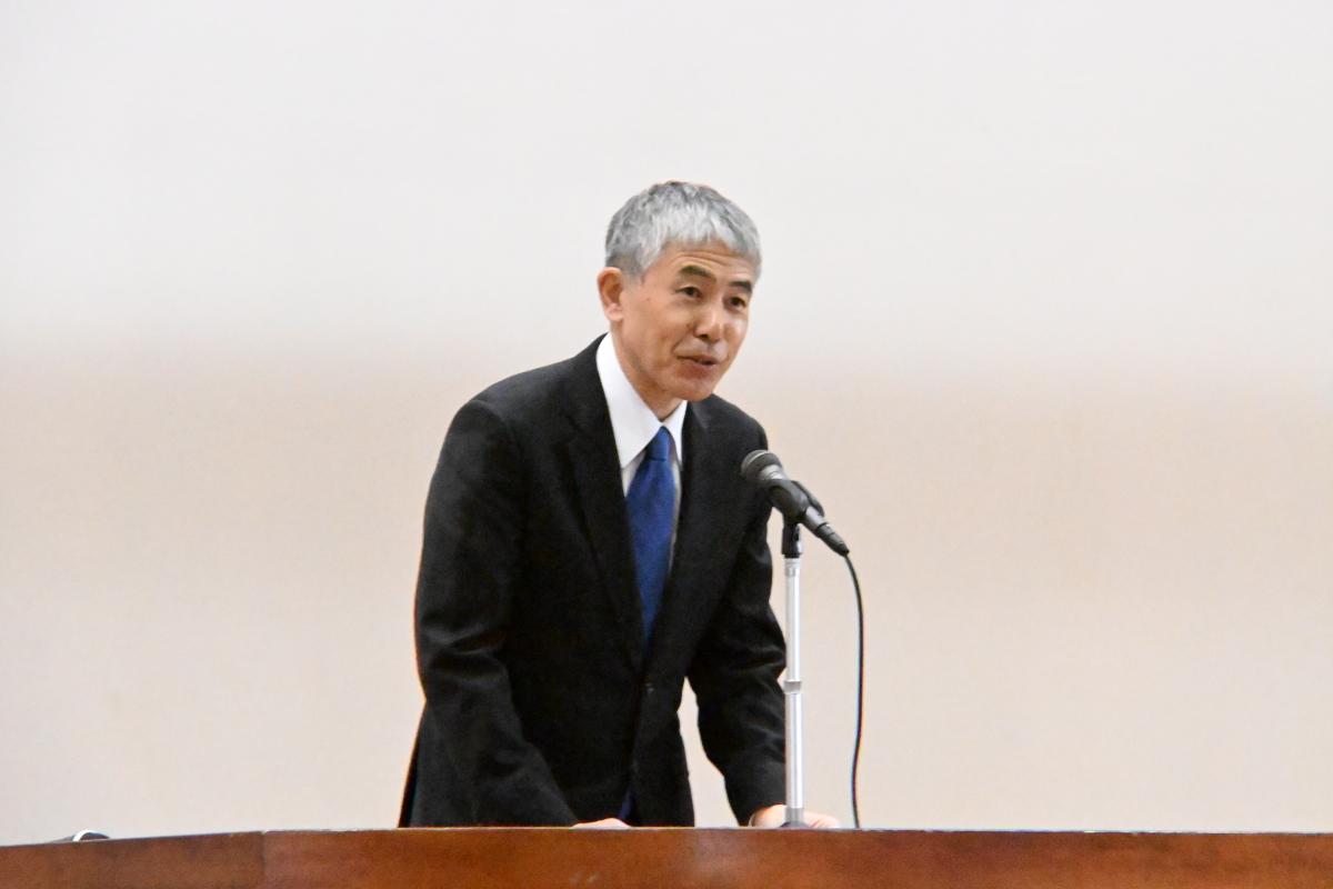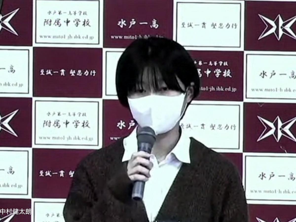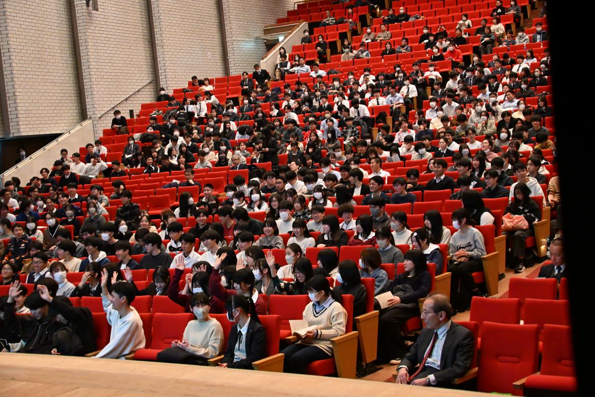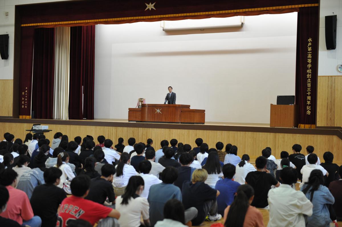 尾身先生は、「水戸一高・附属中生への3つのメッセージ」として、「得手に帆を揚げよ」「視野を広げよ」「困難を楽しめ」を示されるとともに、集団を束ねたり、個々の道を究めたりするリーダーとしての成長を生徒に強く期待され、講演を締めくくられました。