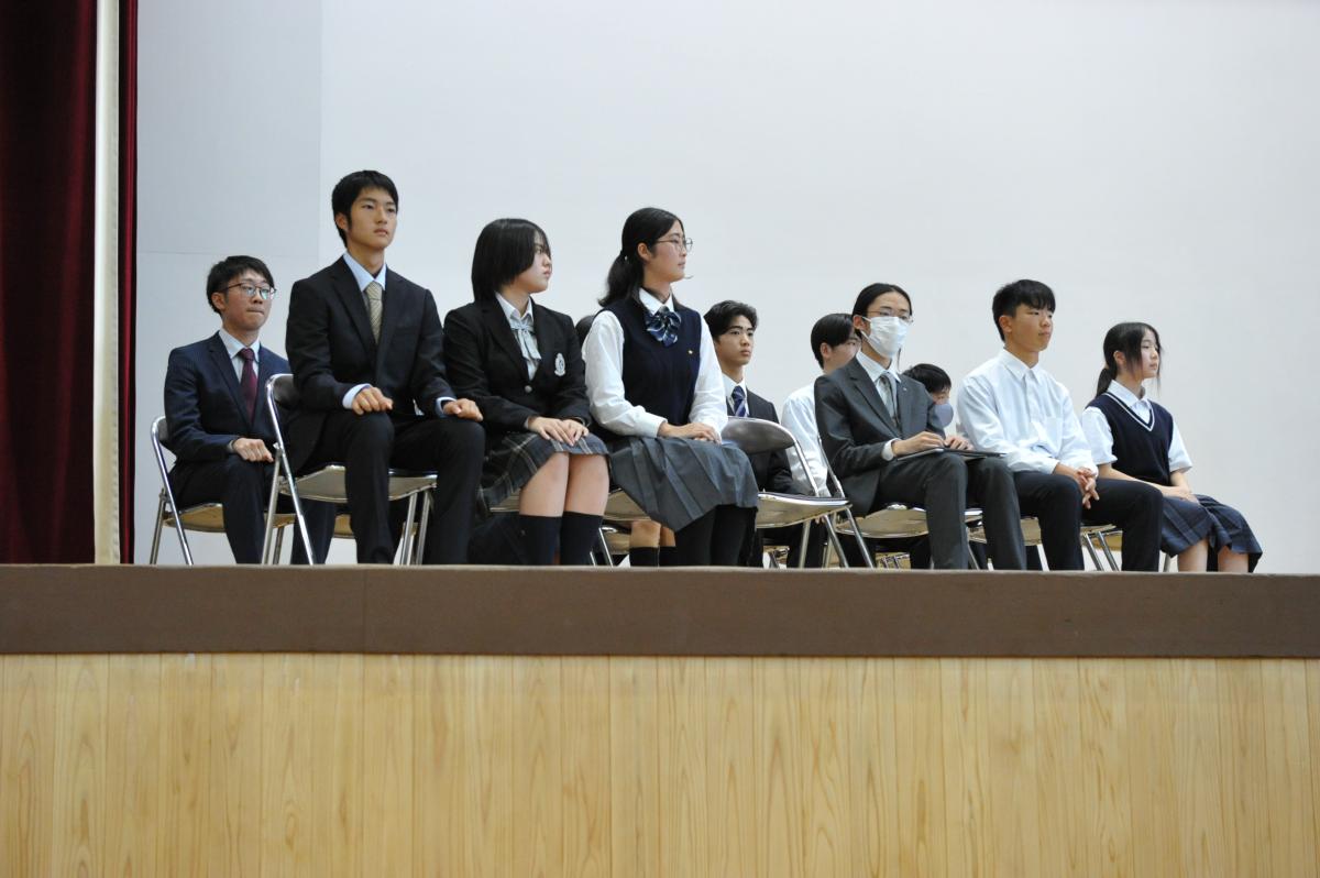 立会演説会では、知道生徒会長・副会長に立候補した本人及び推薦人から「学校を少しでも良くしていきたい」との熱い思いのこもったスピーチがありました。これらを参考に生徒が投票を行い、後期の役員が決定します。