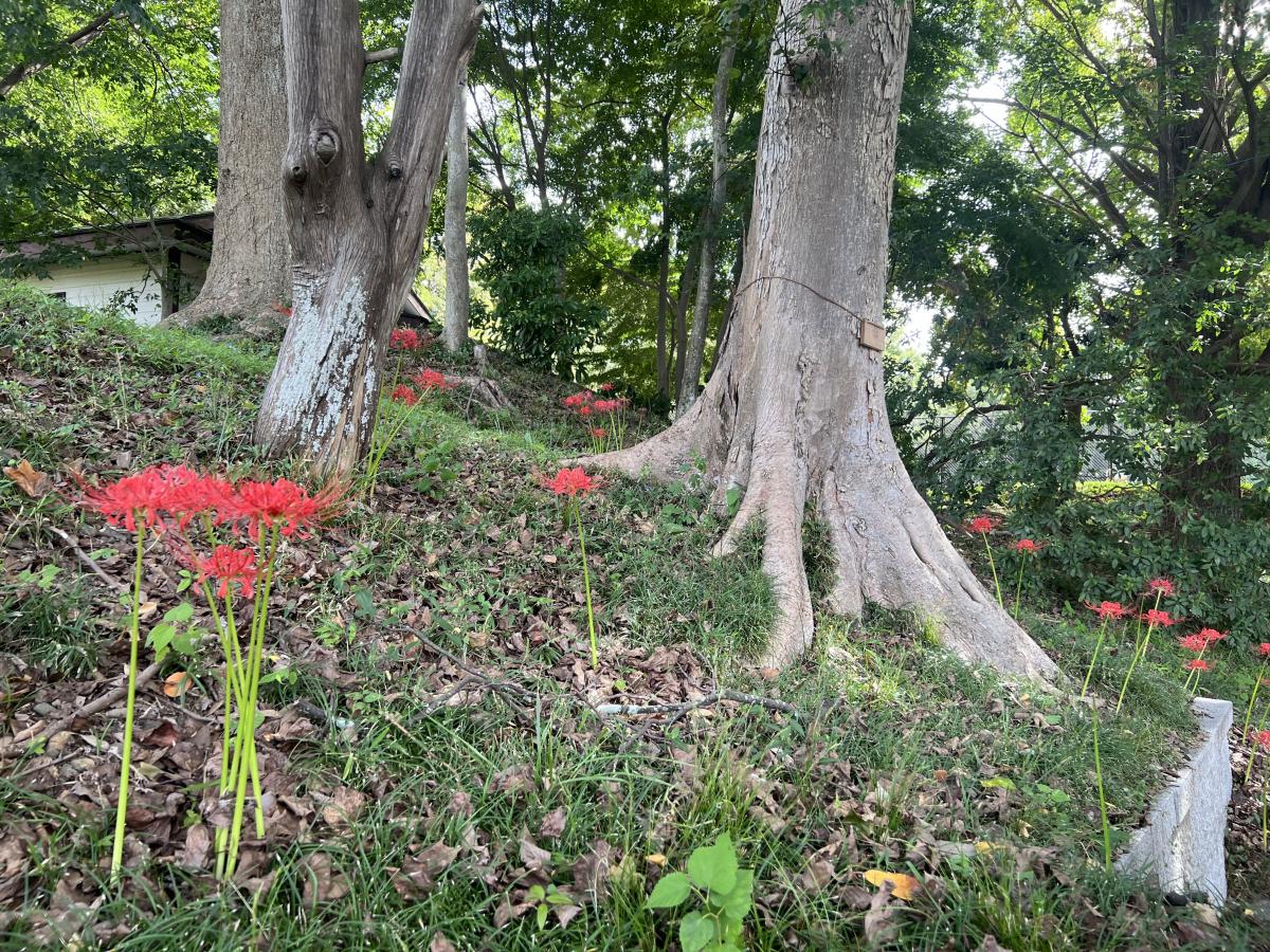 「暑さ寒さも彼岸まで」と言いますが、お彼岸は過ぎても暑い日が続いています。校内の曼珠沙華(彼岸花)も、正門脇の土塁上を中心にまだたくさん咲いており、登下校時の生徒たちや薬医門の見学に来られた方々の目を楽しませてくれています。