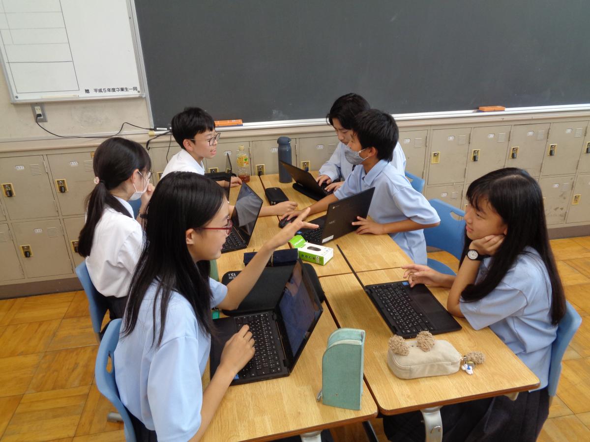 <1年生>数学のグループ活動、英語のプレゼン発表