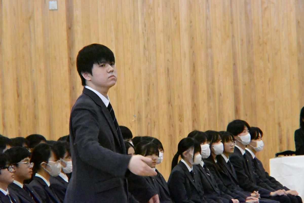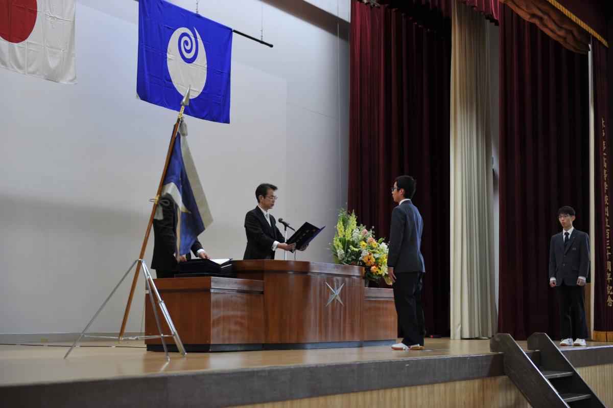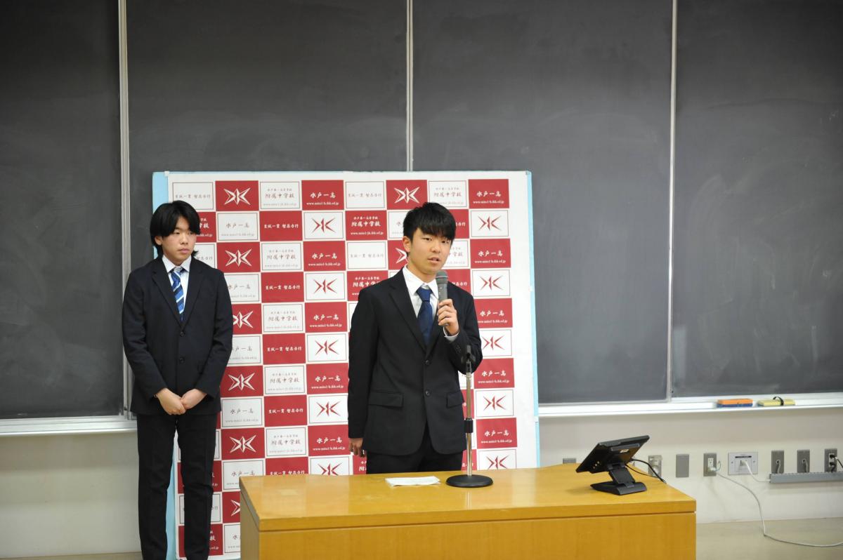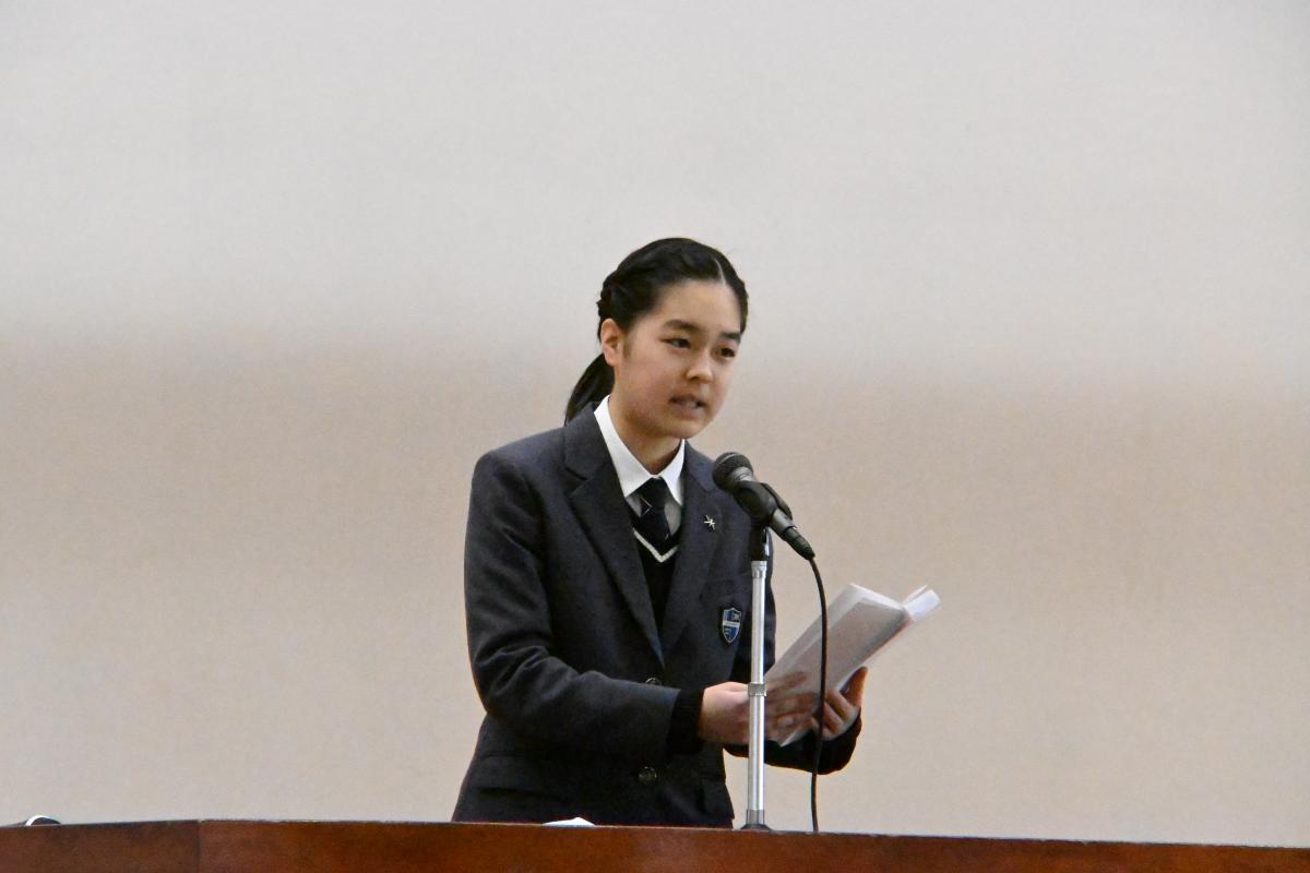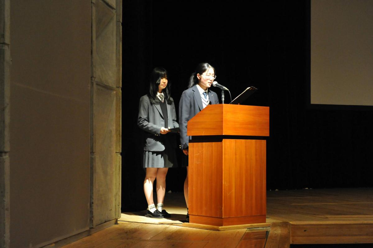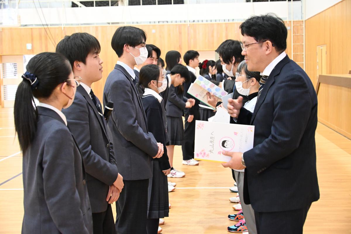 最後に、中学、高校それぞれの生徒会長が、生徒を代表して先生に謝辞を申し上げました。