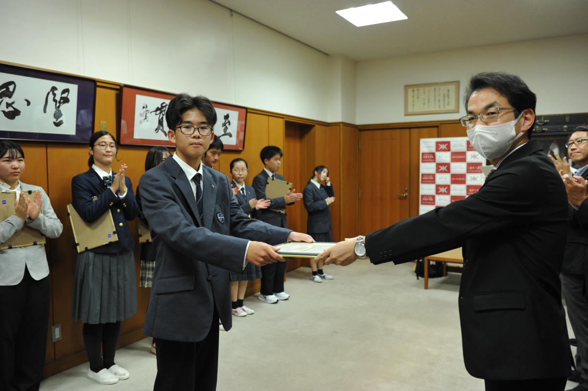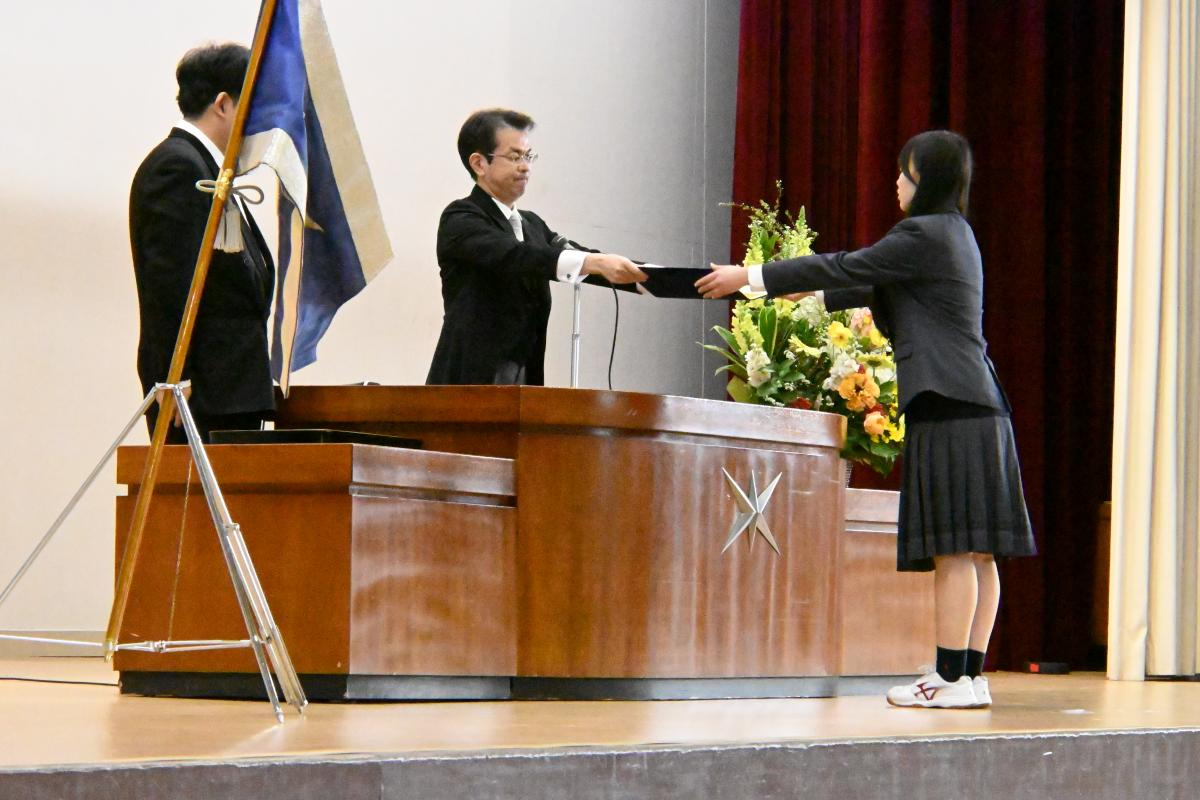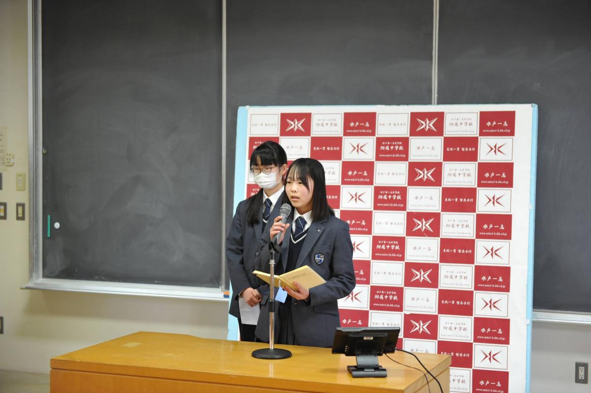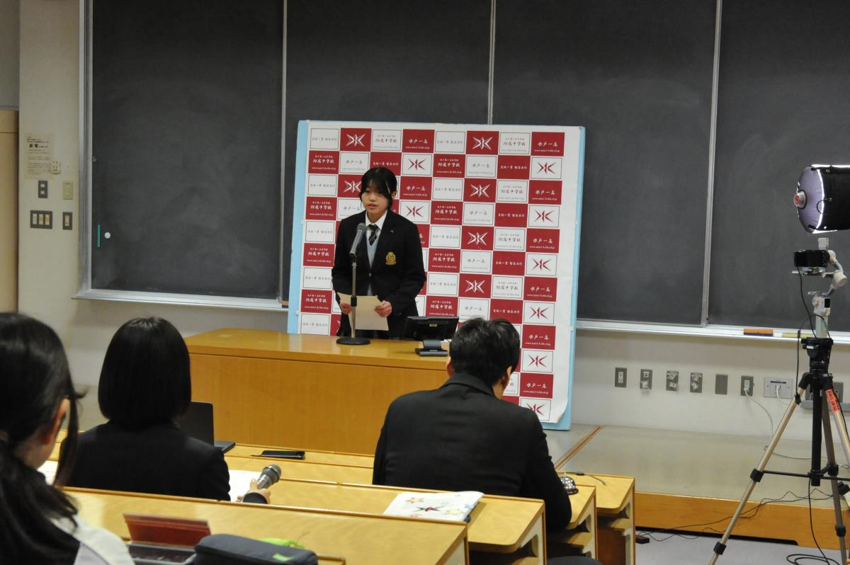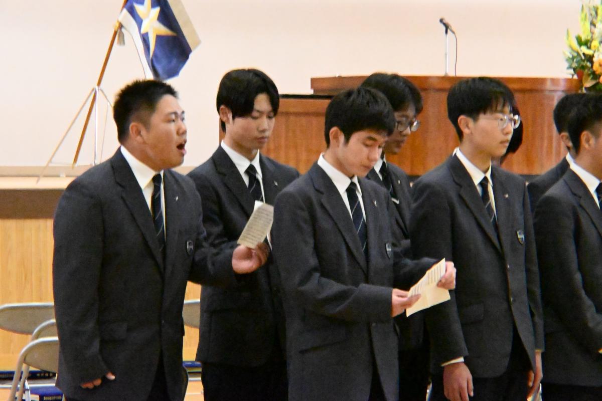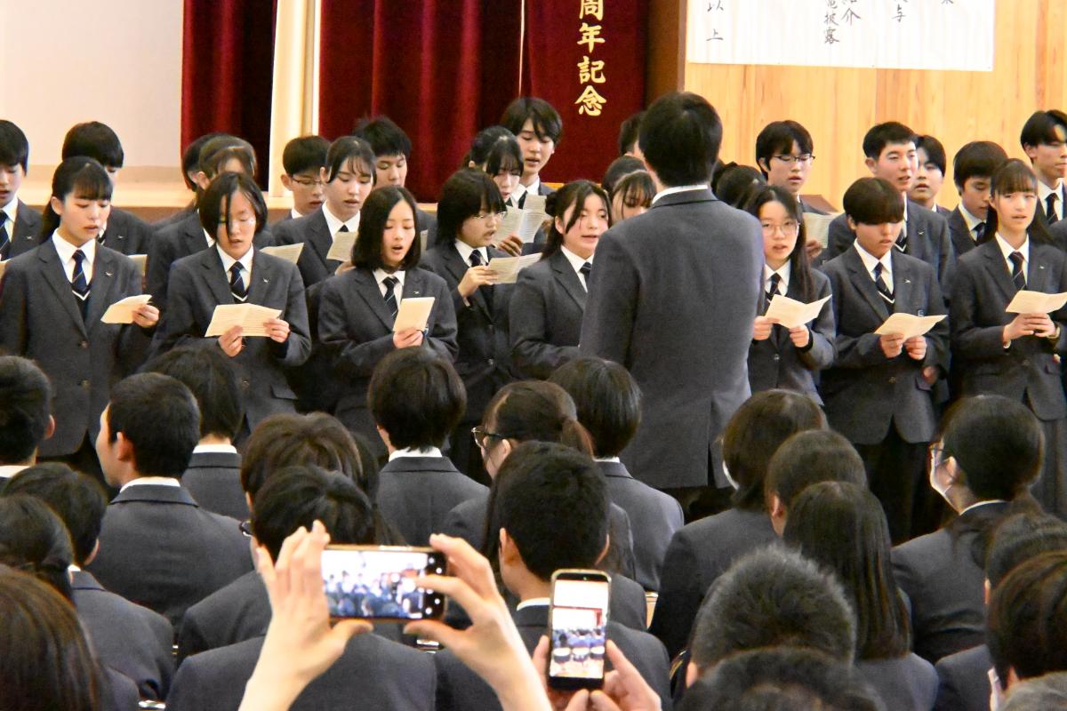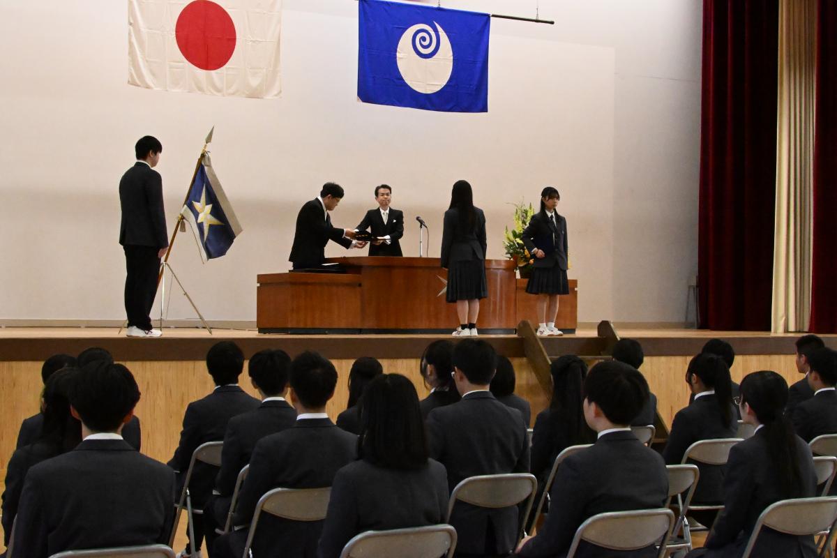 最後に、中学、高校それぞれの生徒会長が、生徒を代表して先生に謝辞を申し上げました。