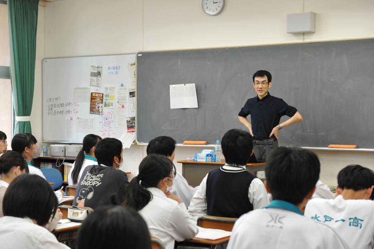 夜は、水戸一高の卒業生(2009年)である京都大学総合博物館の竹之内惇志先生と京都府教育委員会学校教育課の三矢哲郎課長をお招きし、ミニ講演と夕食会を開催しました。これからの進路選択に役立つお話をたくさん聞かせていただきました。