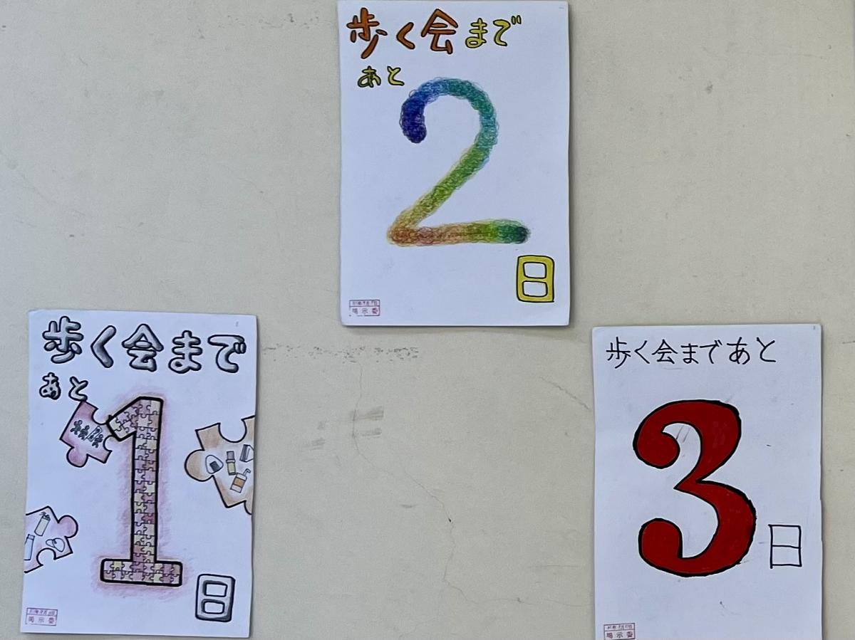 いよいよ明日は歩く会。本日は3限で授業を終え、実行委員会からの事前指導等を行いました。生徒たちは昼過ぎには下校し、明日の本番に備えていました。