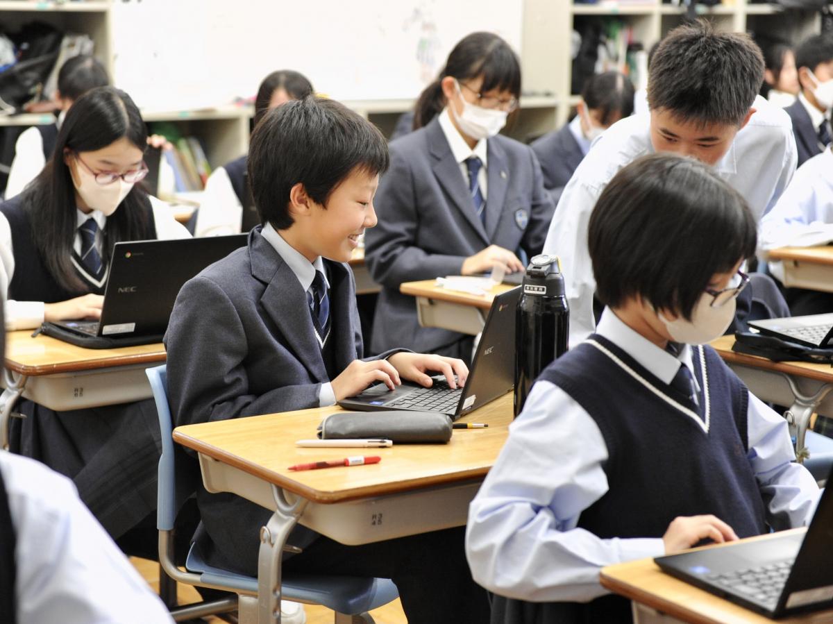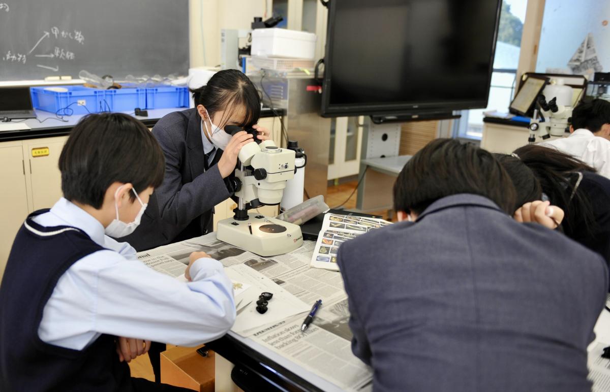 日本電子株式会社理科支援グループ様のご協力のもと、今年度も中学1年生を対象に最先端科学ワークショップを開催しました。電子顕微鏡に関するわかりやすい説明を聞いたり、実際に電子顕微鏡を操作したりするなかで、生徒の興味・関心、学ぶ意欲が高まっている様子が見て取れました。