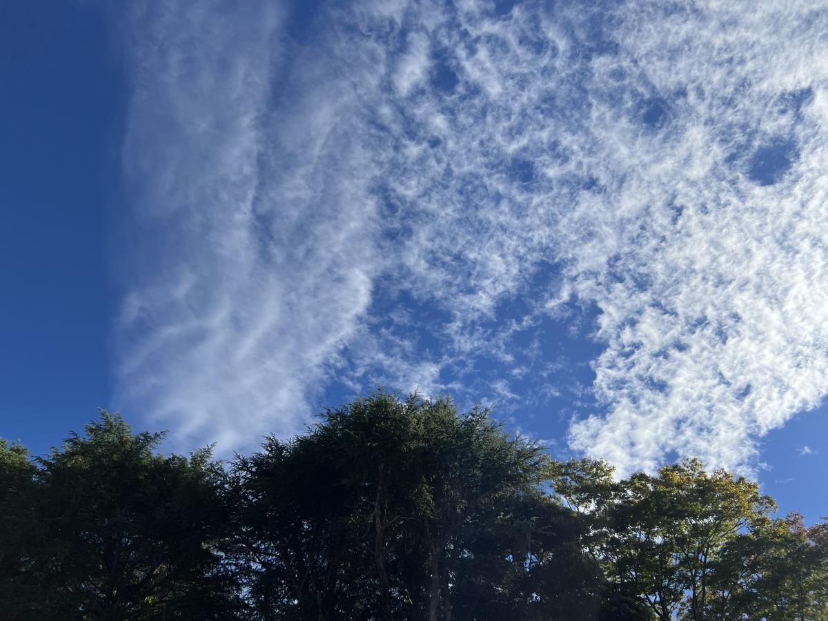 歩く会も終わり、季節の移り変わりを感じます。凛として澄みわたり、一段と高くなったように見える空に、秋の雲がたなびいていました。