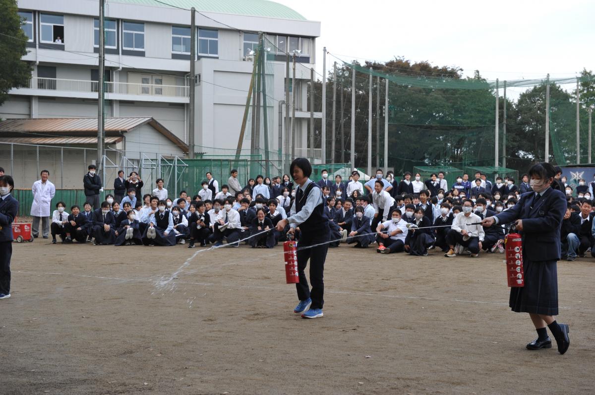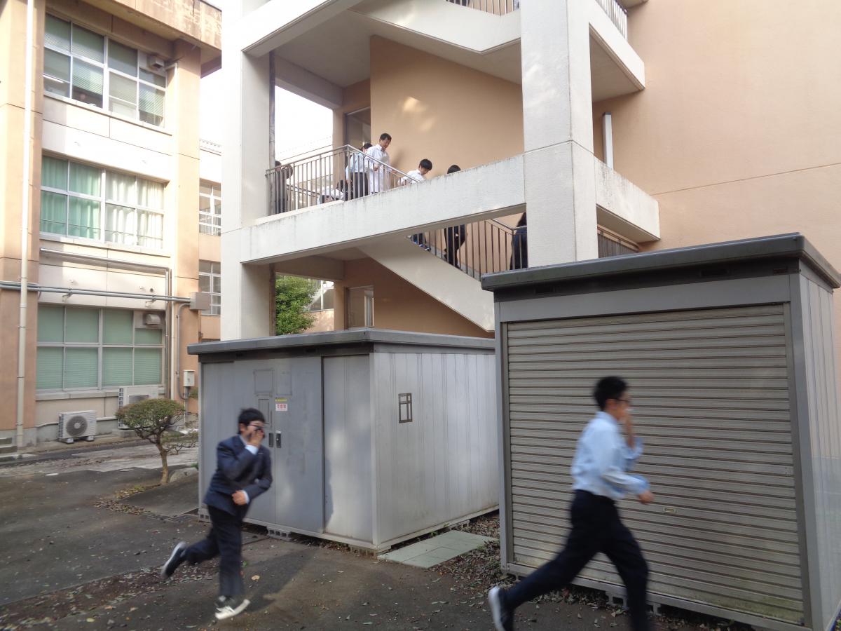 本日、地震時の火災を想定した避難訓練を、中高合同で実施しました。生徒たちは、校舎からグラウンドへと冷静かつ迅速に避難することができました。消火訓練も併せて行い、最後に校長から「危機にも様々あるが、距離の取り方、急所の守り方が共通する対処のポイント。普段から意識して備えていこう」との訓話と、今秋着任した警備担当スタッフの紹介がありました。