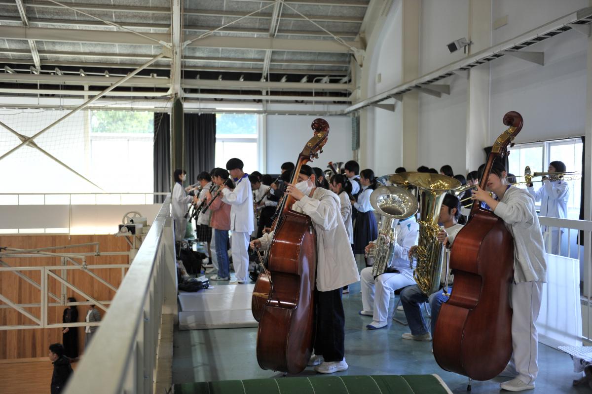 来月から開幕する夏の高校野球茨城県予選の全校応援に向けて、野球応援練習が行われました。野球応援練習の実施は5年ぶりの実施で、附属中開校以来初です。校歌斉唱や応援歌を歌ったり、ジャンプしたりして楽しみながら練習できました。