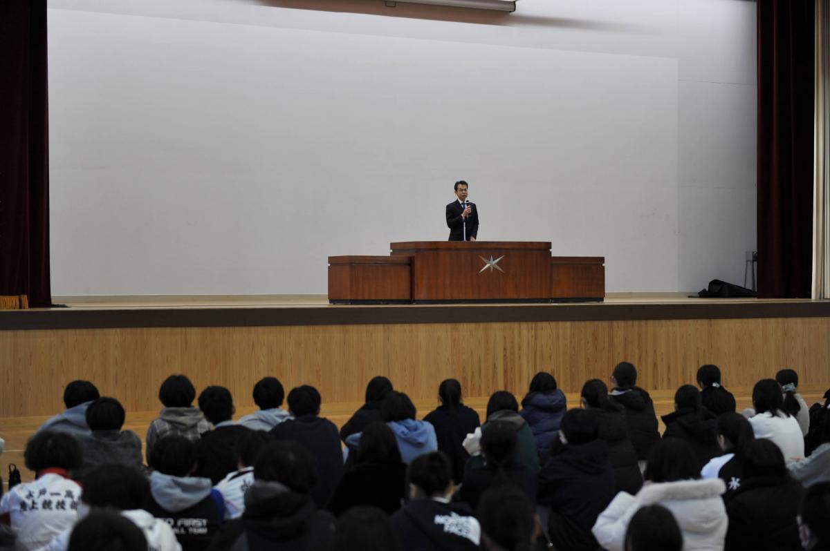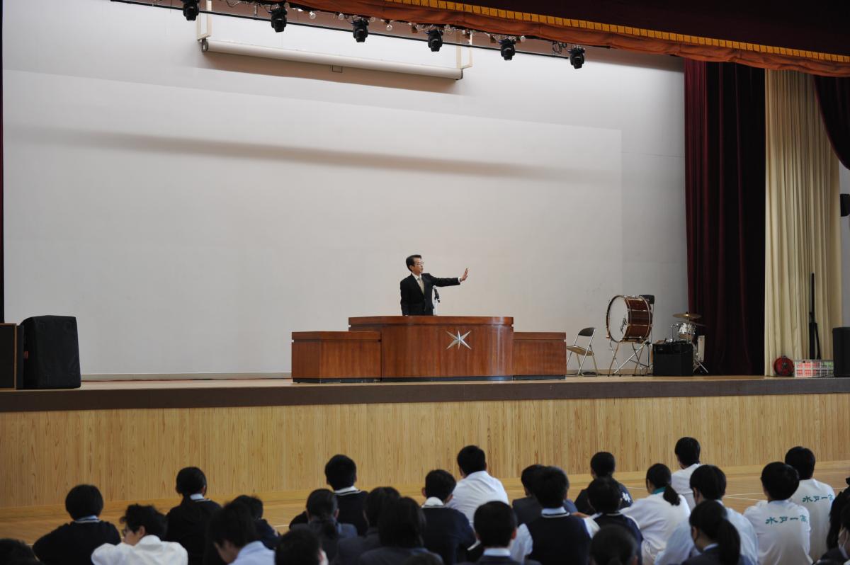 日野田直彦先生(活育財団共同代表、元大阪府立箕面高等学校長)を講師に迎え、生徒・職員を対象に、「未来教育セミナー」を開催しました。「世界で羽ばたく勇者になるために」との演題で行われた基調講演、質疑応答等を通じ、自分自身や本校の未来について考える良い機会となりました。