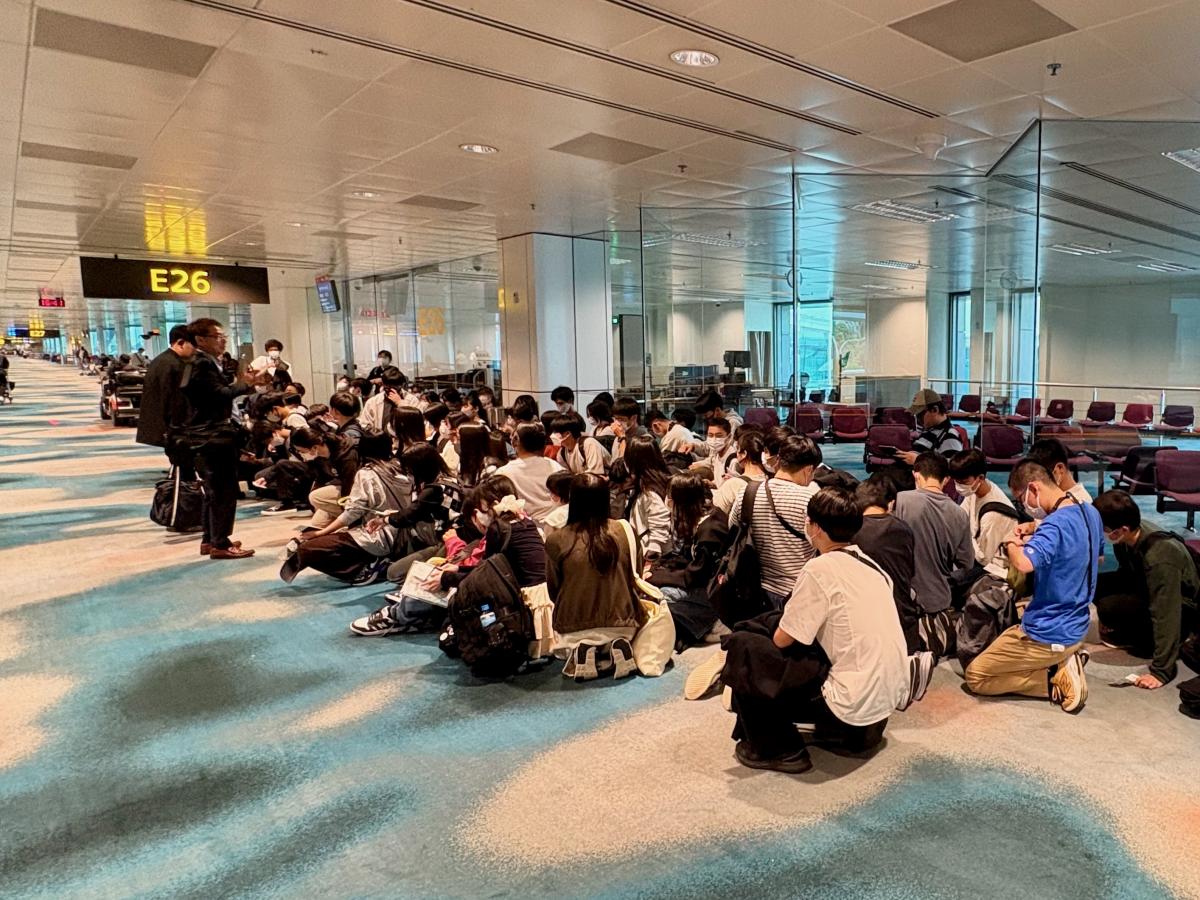 今日から5日間、3年生がマレーシア・シンガポールで研修を行います。初日は、早朝に水戸駅前に集合し、バスで成田空港へと出発。成田空港からシンガポール・チャンギ空港を経由してマレーシア・クアラルンプール空港に到着しました。「海外は初めて」という生徒も多い中、一日で日本、シンガポール、マレーシア三国の国際空港を体験したわけです。