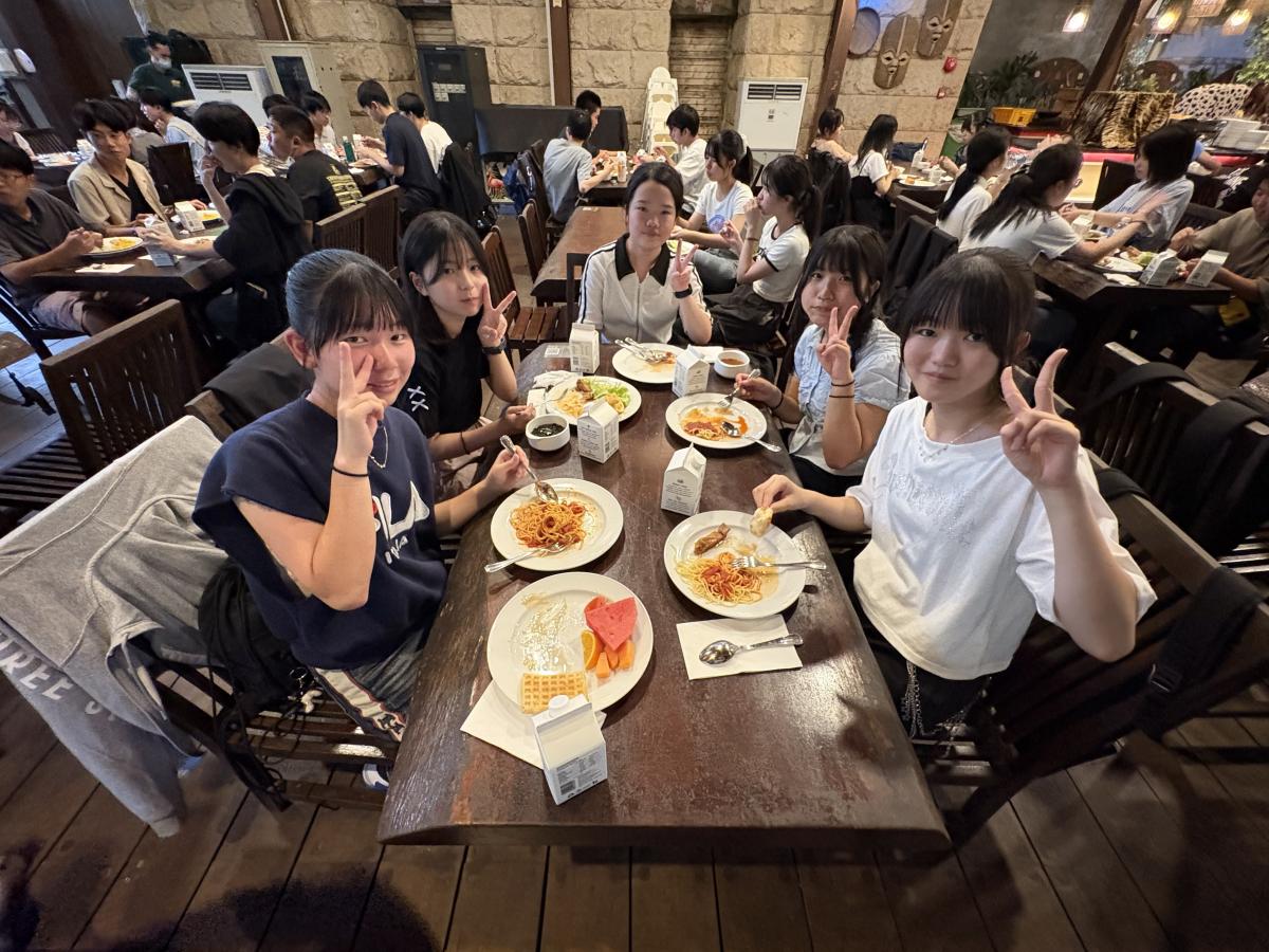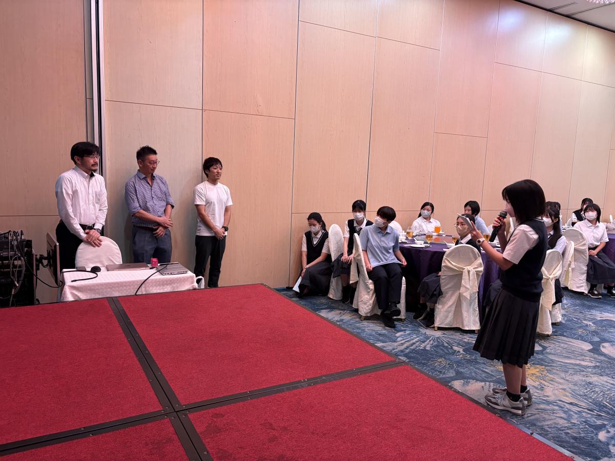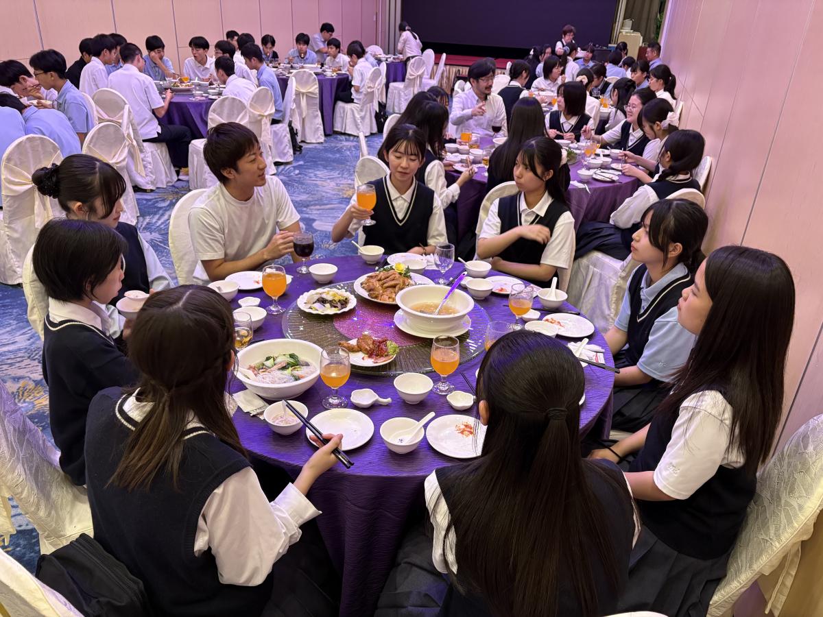 夕食は、アジア知道会の方々と一緒にいただきました。アジアで活躍されている水戸一高の先輩たちとの交流は、生徒たちにとって大きな刺激となったようです。