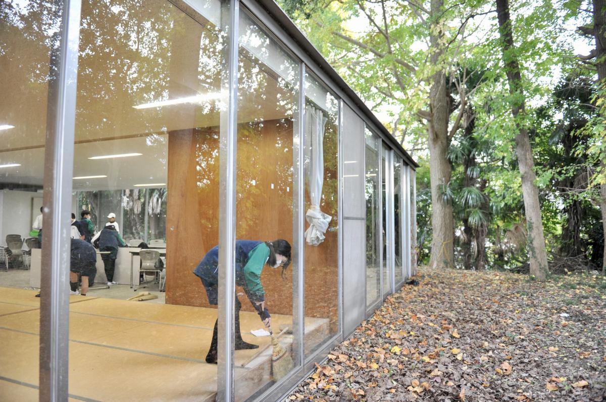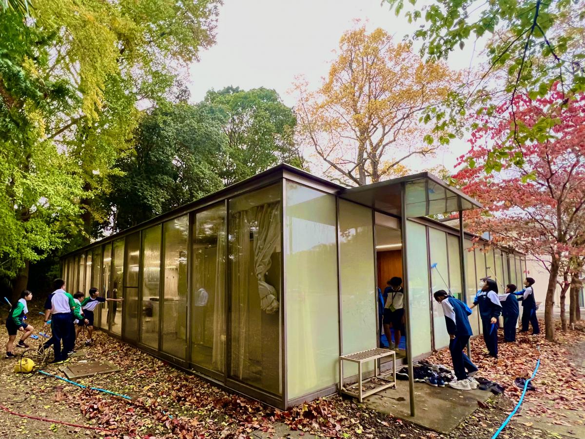 その後、2000年(平成12年)に建て替えられることとなり、同年9月22日に竣工しました。設計者は、水戸一高卒業生である世界的建築家・妹島和世さん。周囲の自然に溶け込むような、ガラス張りの美しい建物です。老朽化が進んできてはいますが、適切に修繕を施しつつ、有効に活用してまいります。