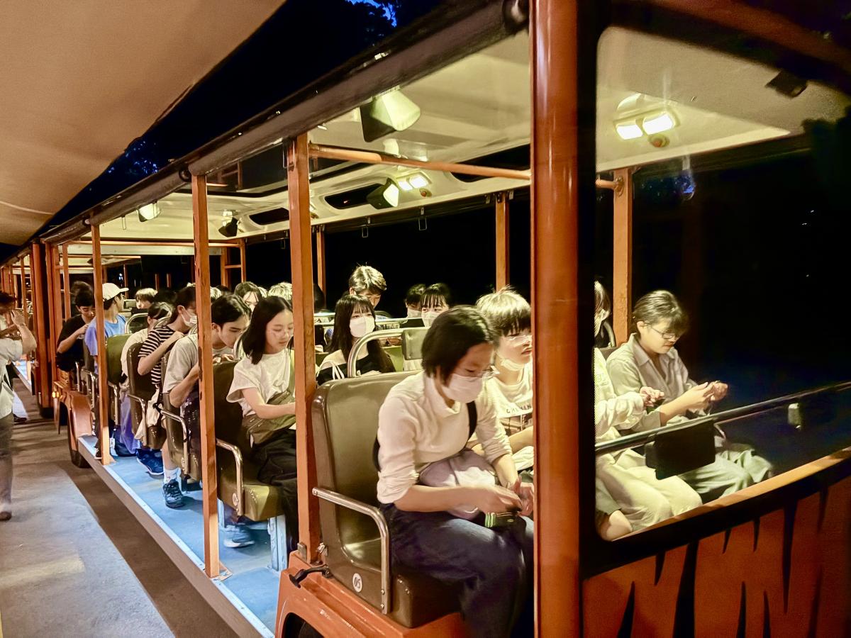 午後は、シンガポール国立大学の学生とともに、公共交通機関で市内を自由に巡り、近代的な建物や多様な文化を体感することができました。夜は、ナイトサファリを訪問。トラムに乗りながら、多くの動物や植物を間近に観ることができました。