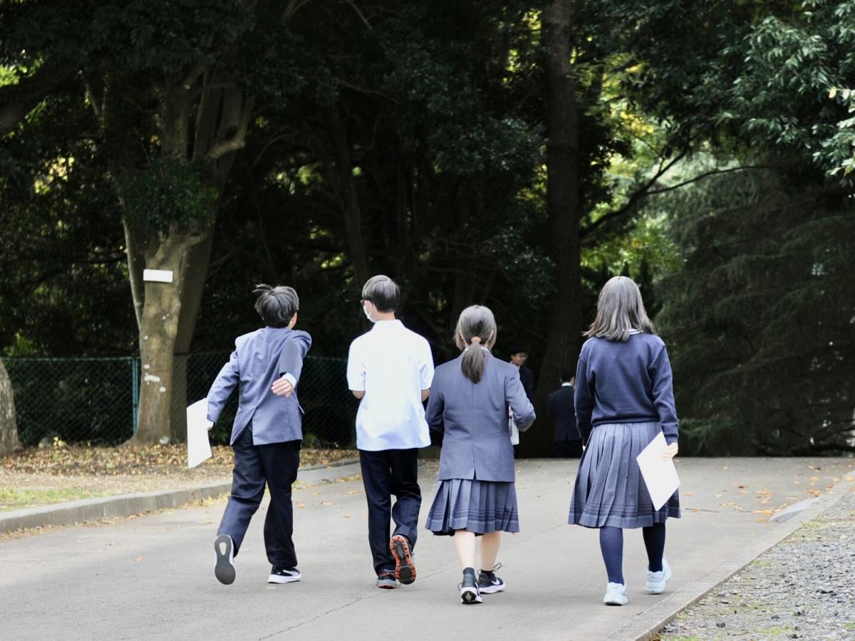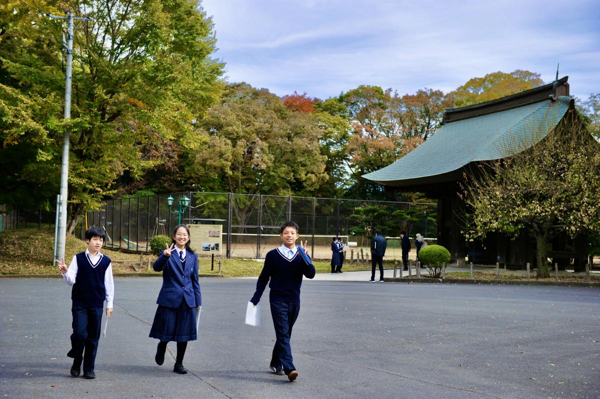 11月最初の授業日。爽やかな晴天の下、生徒たちが登校してきました。