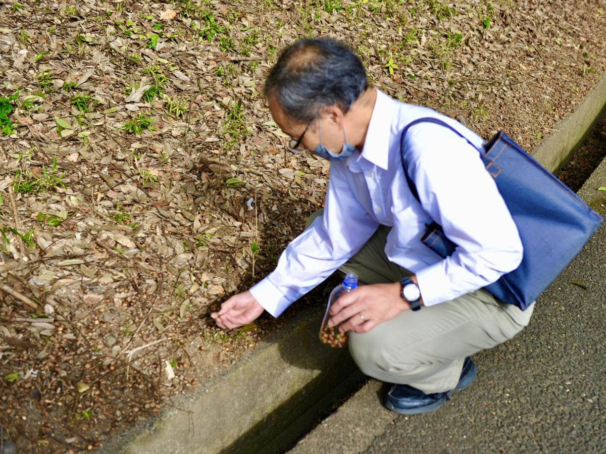 高校の生物の先生が、授業で使うためにどんぐりを拾い集めていました。