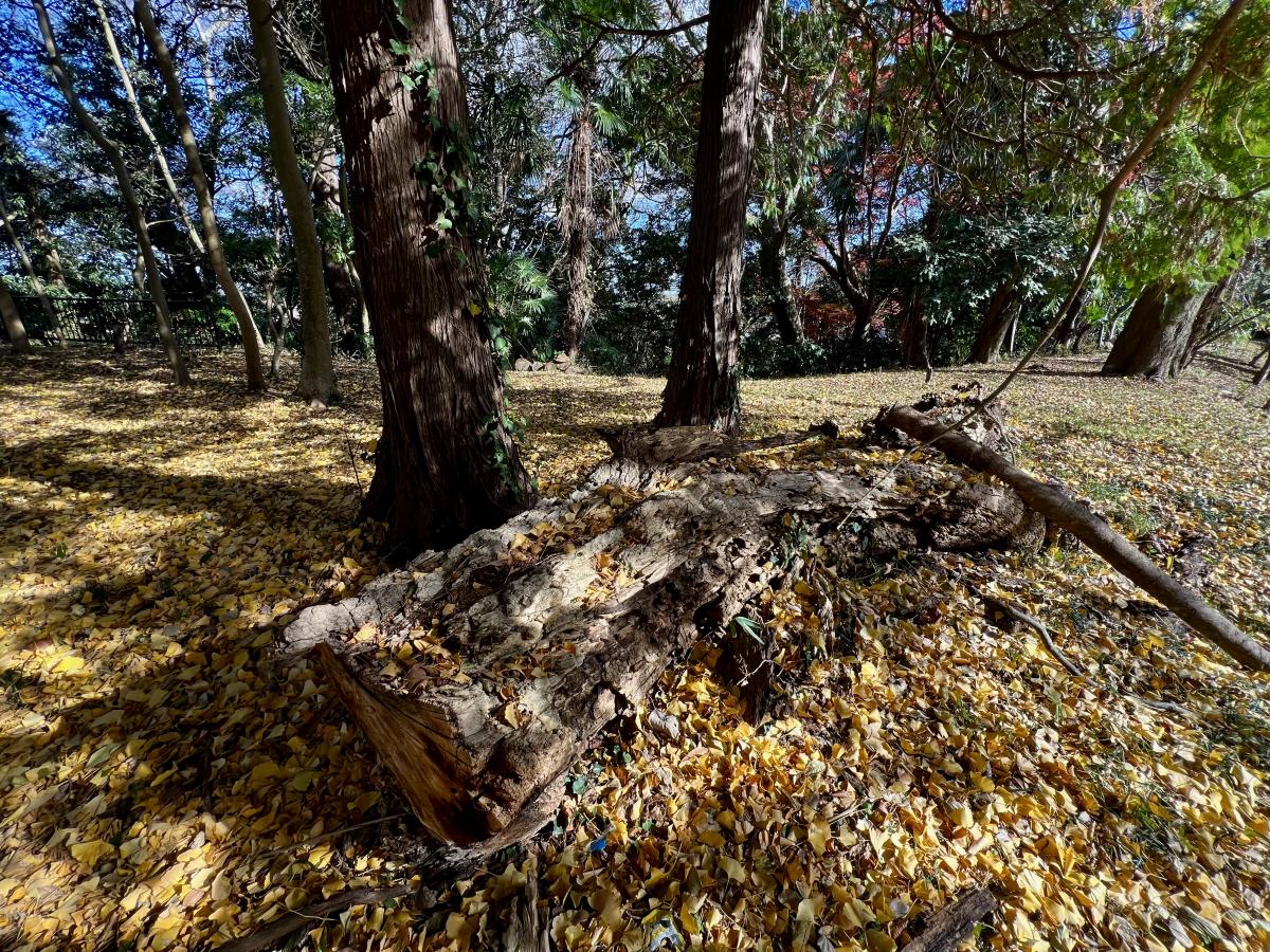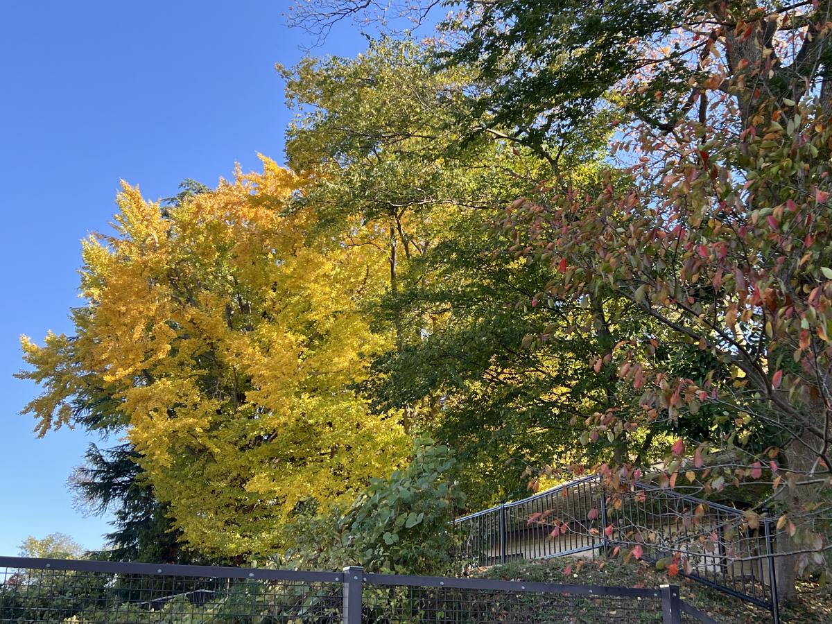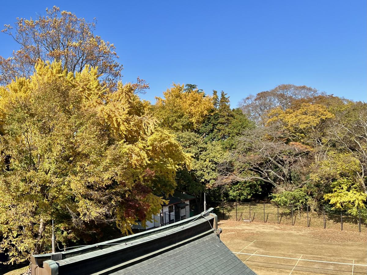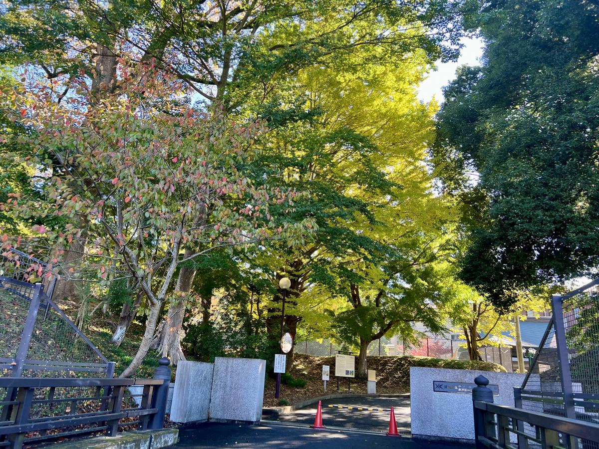 なお、旧制水戸中時代には既にあったと推定される銀杏の大木から垂れ下がった葉が、陽光の下で輝いていました。