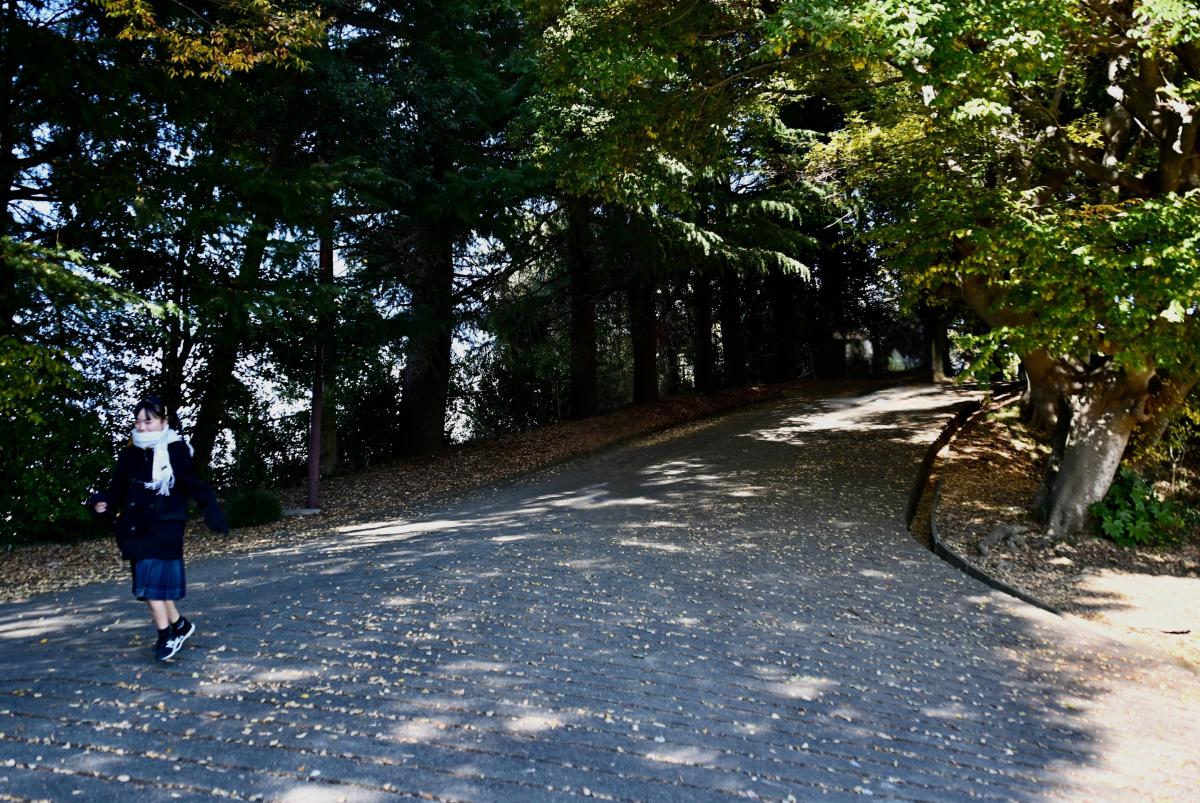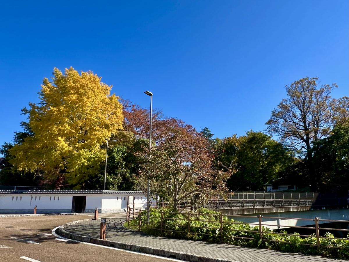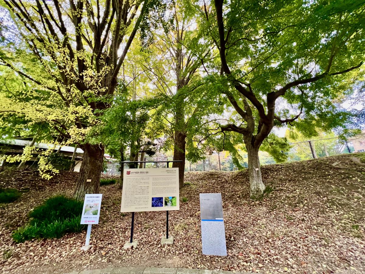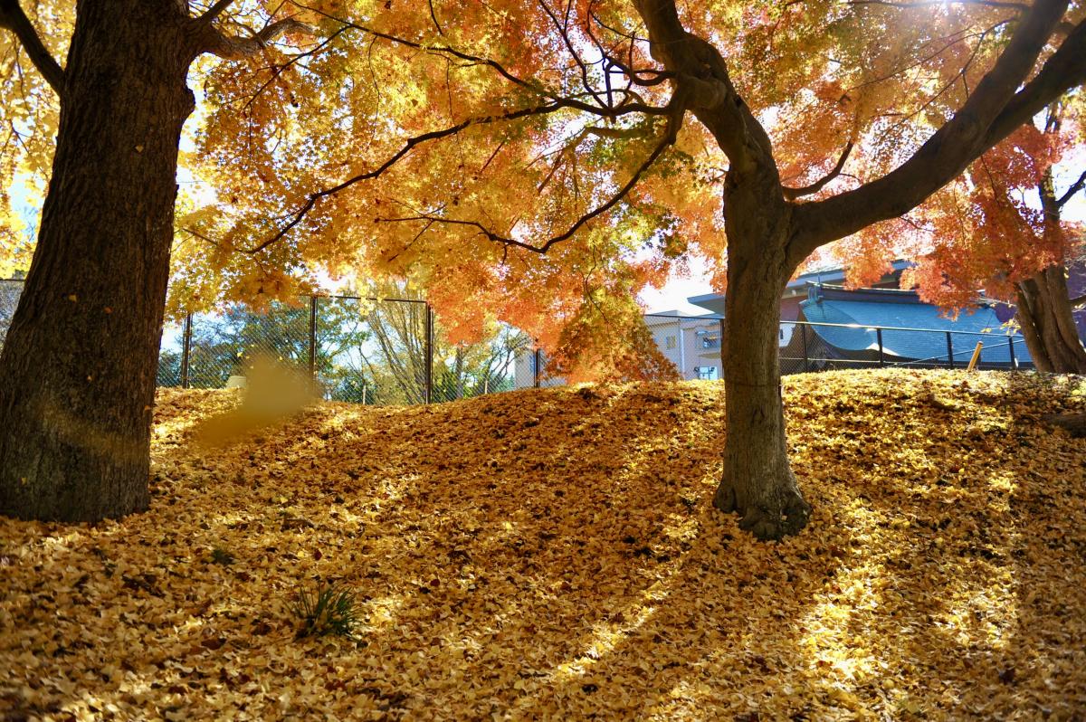 なお、旧制水戸中時代には既にあったと推定される銀杏の大木から垂れ下がった葉が、陽光の下で輝いていました。