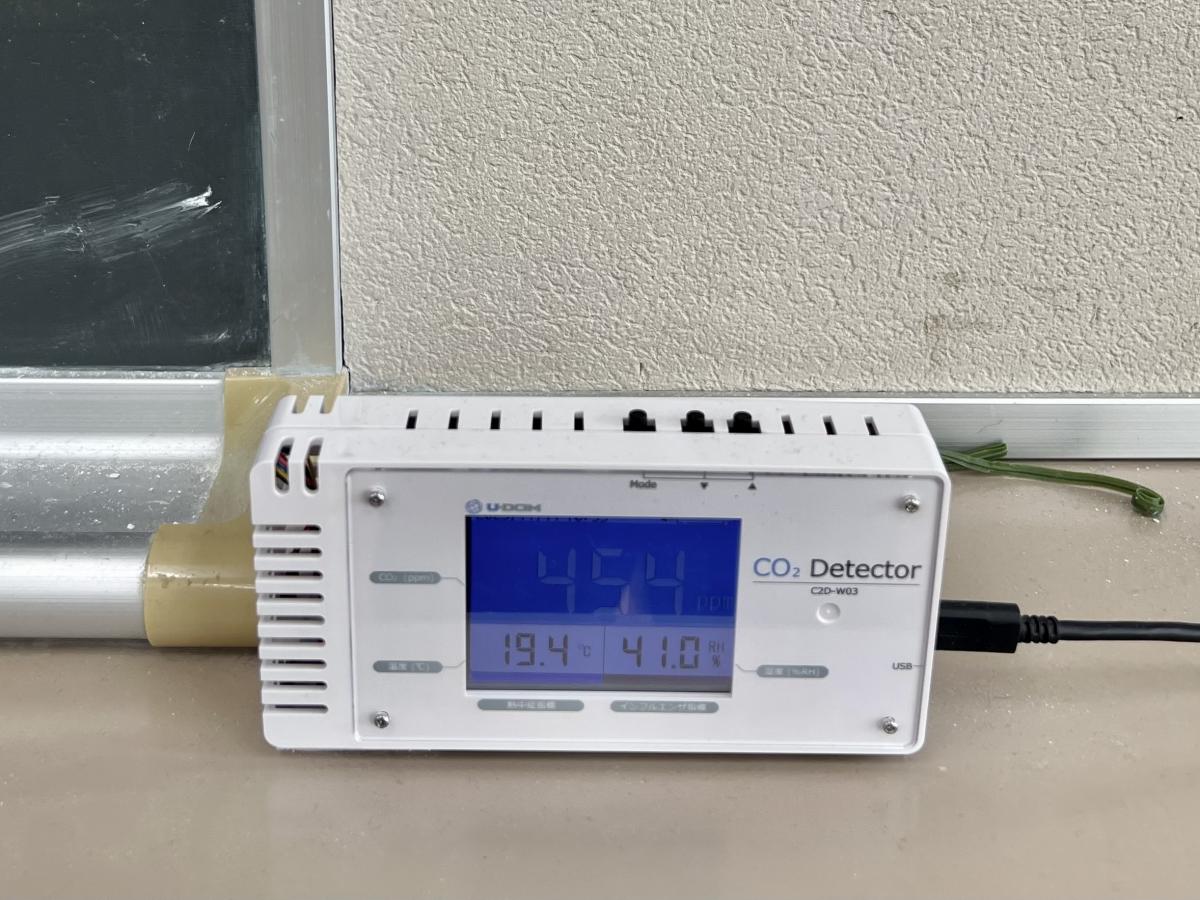 また本校では、各教室等に通信機能付きの測定器を設置し、Co2濃度を監視して換気等に役立てています。