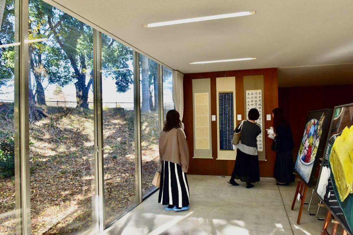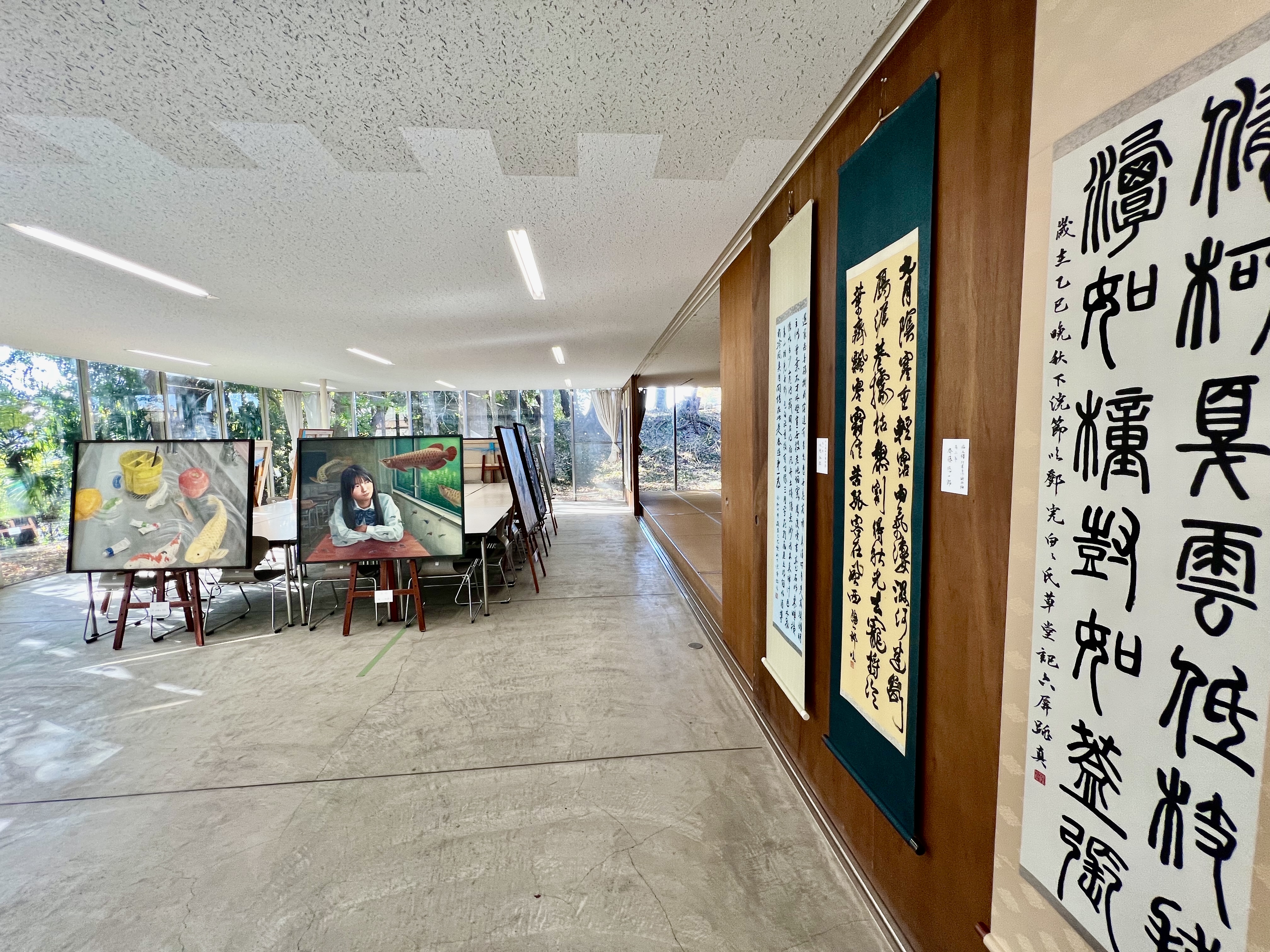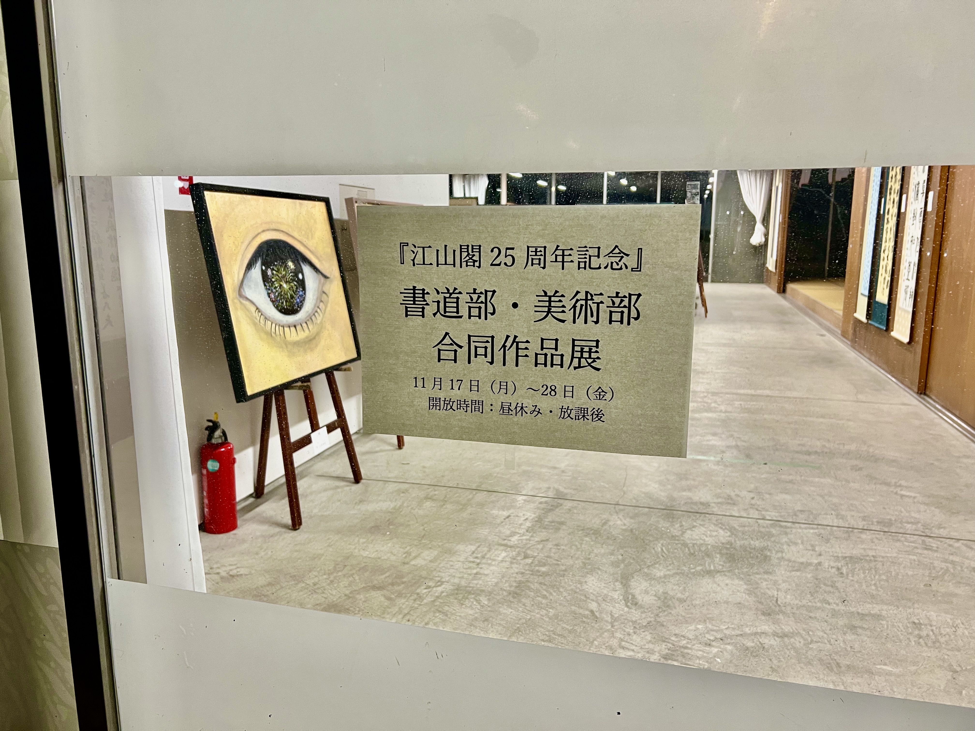 水戸一高卒業生で、世界的建築家の妹島和世さんが設計された「江山閣」の開館25年を記念して、美術部・書道部が館内に作品を展示しました。今日から昼休みと放課後に、生徒・職員に限定して公開しています。11月28日午前の学校公開の際には、保護者や一般の方もご覧いただけます。機会がありましたら、ご高覧ください。