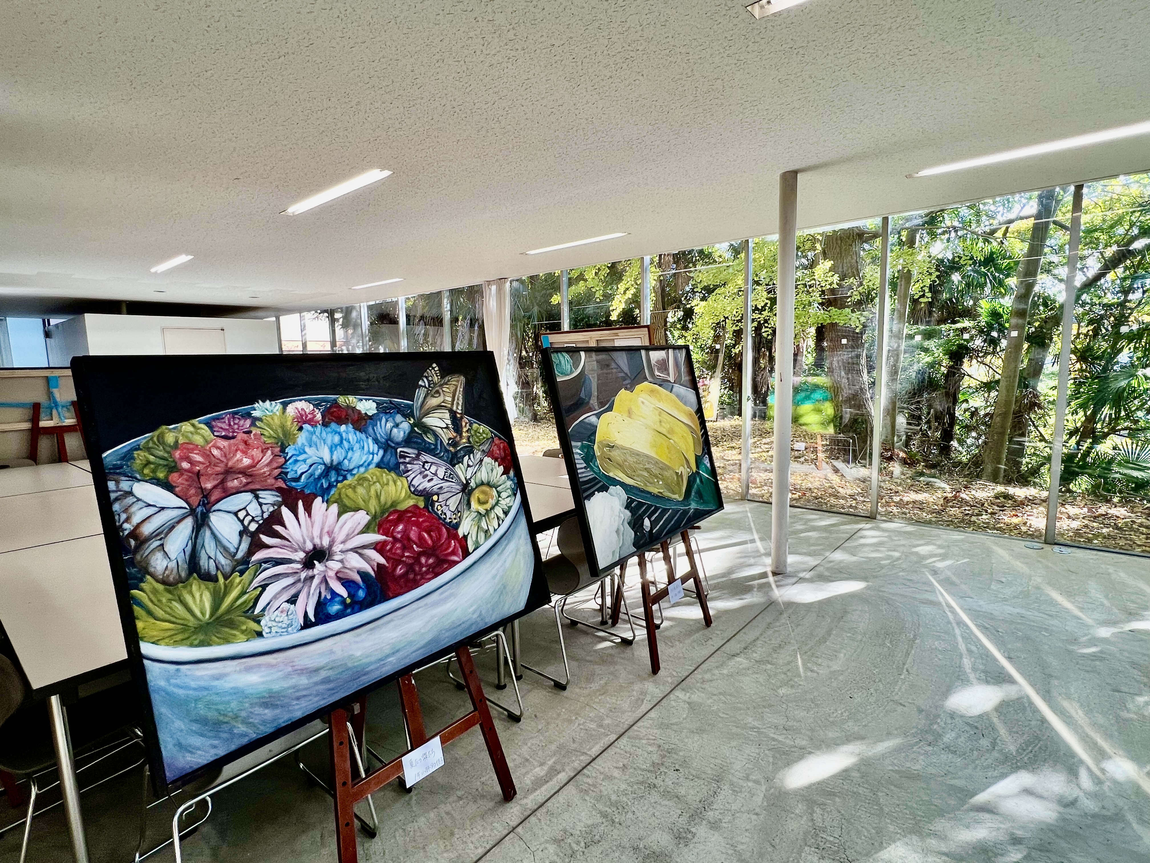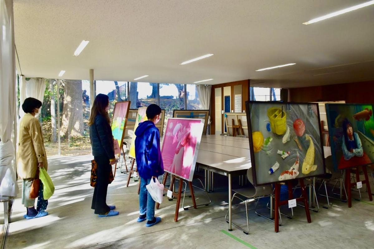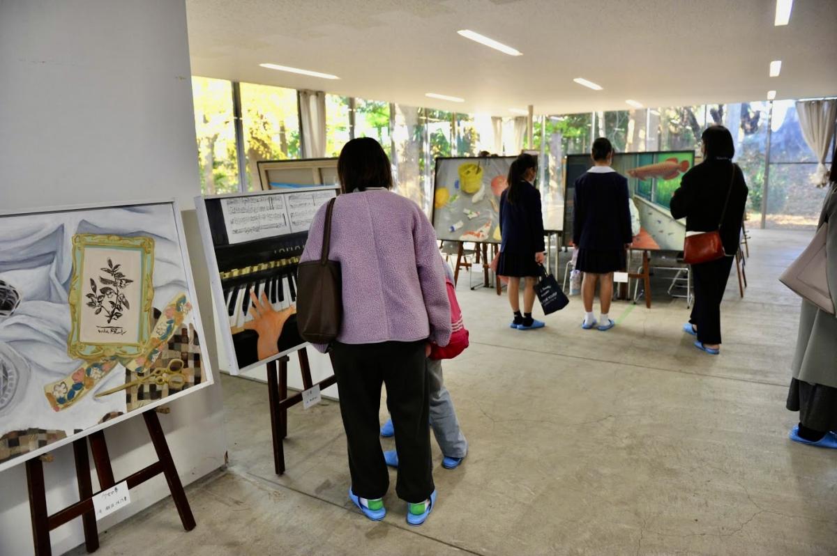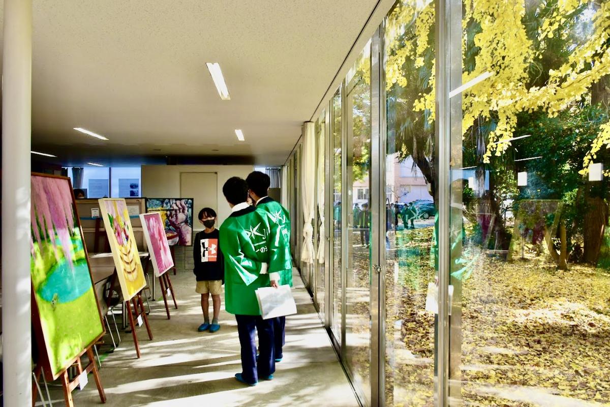 水戸一高卒業生で、世界的建築家の妹島和世さんが設計された「江山閣」の開館25年を記念して、美術部・書道部が館内に作品を展示しました。今日から昼休みと放課後に、生徒・職員に限定して公開しています。11月28日午前の学校公開の際には、保護者や一般の方もご覧いただけます。機会がありましたら、ご高覧ください。