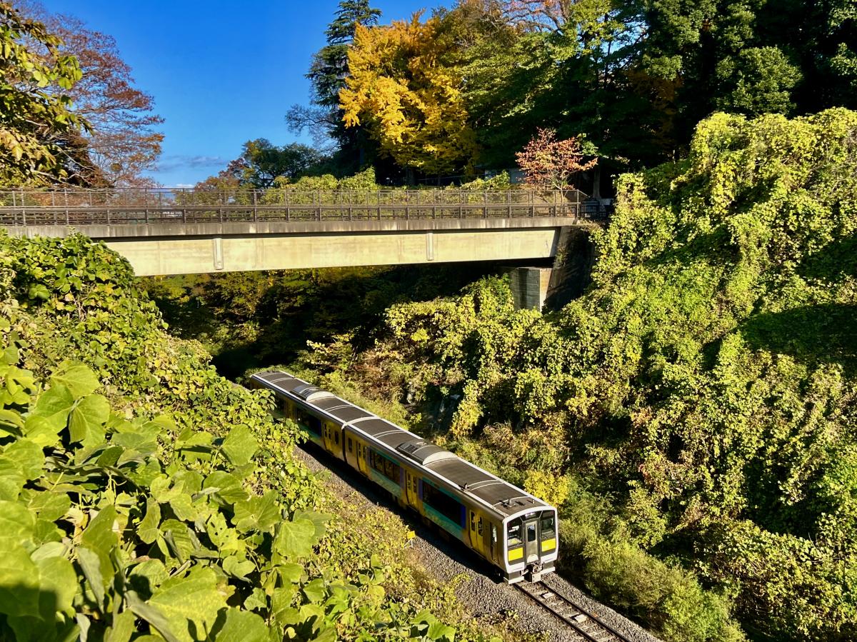 今日は、鉄道電化の日。1956(昭和31)年のこの日に東海道本線が全線電化されたことを記念したものだそうです。一方で、本校の目の前の堀を通る水郡線は、未だ電化されていません。しかし、架線がないおかげで、全国有数の規模を誇る雄大な水戸城本丸の土塁や、久慈川の清流などを車窓から堪能できるわけです。