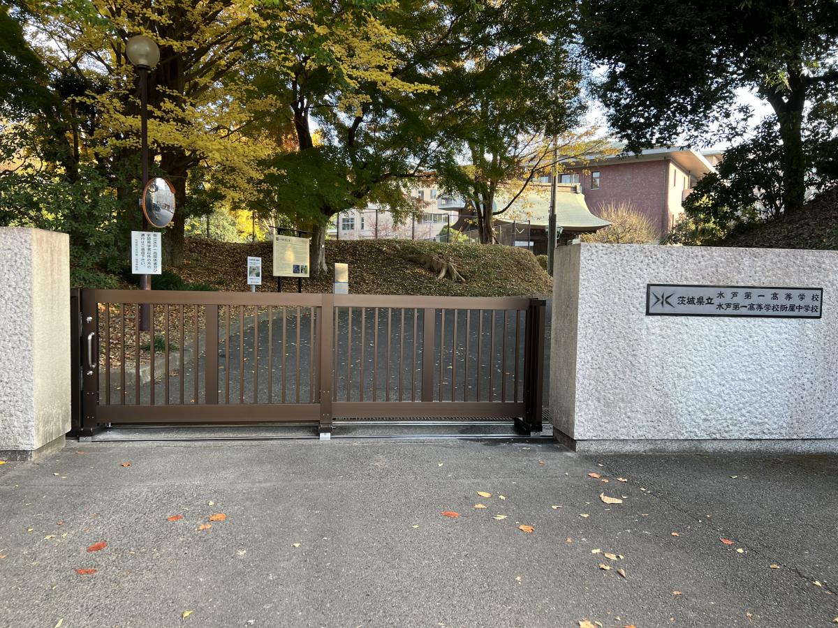 今日は、水戸一高及び本校の創立記念日です。なぜこの日になったのかは明らかではありませんが、明治41年(1908年)に創立記念日と定められました。昭和24年(1949年)の創立記念日には、創立70周年記念式典とともに、第1回学苑祭(当時は「綜合科学展」)が開催されました。今年は土曜日となったため、行事は実施しませんでしたが、このたび正門の門扉をより頑丈で、管理しやすく、周囲の景観にマッチしたものに刷新しました。