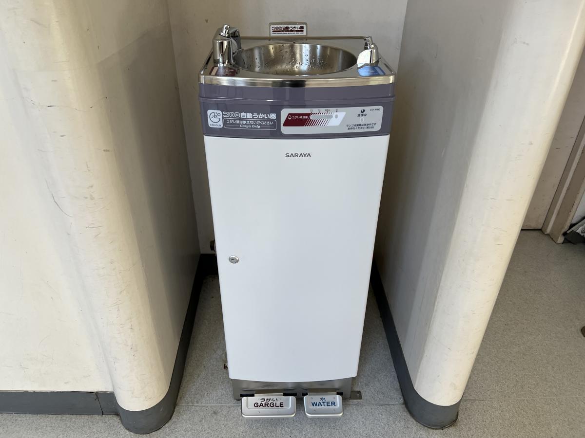 このたび本校では、自動うがい器付きのウォータークーラーを校舎1階ホールに新たに設置するとともに、元々あったウォータークーラーを体育館に移設しました。インフルエンザ等の感染症にかかったり、水分補給を忘れて脱水になったりしないよう、有効活用してまいります。