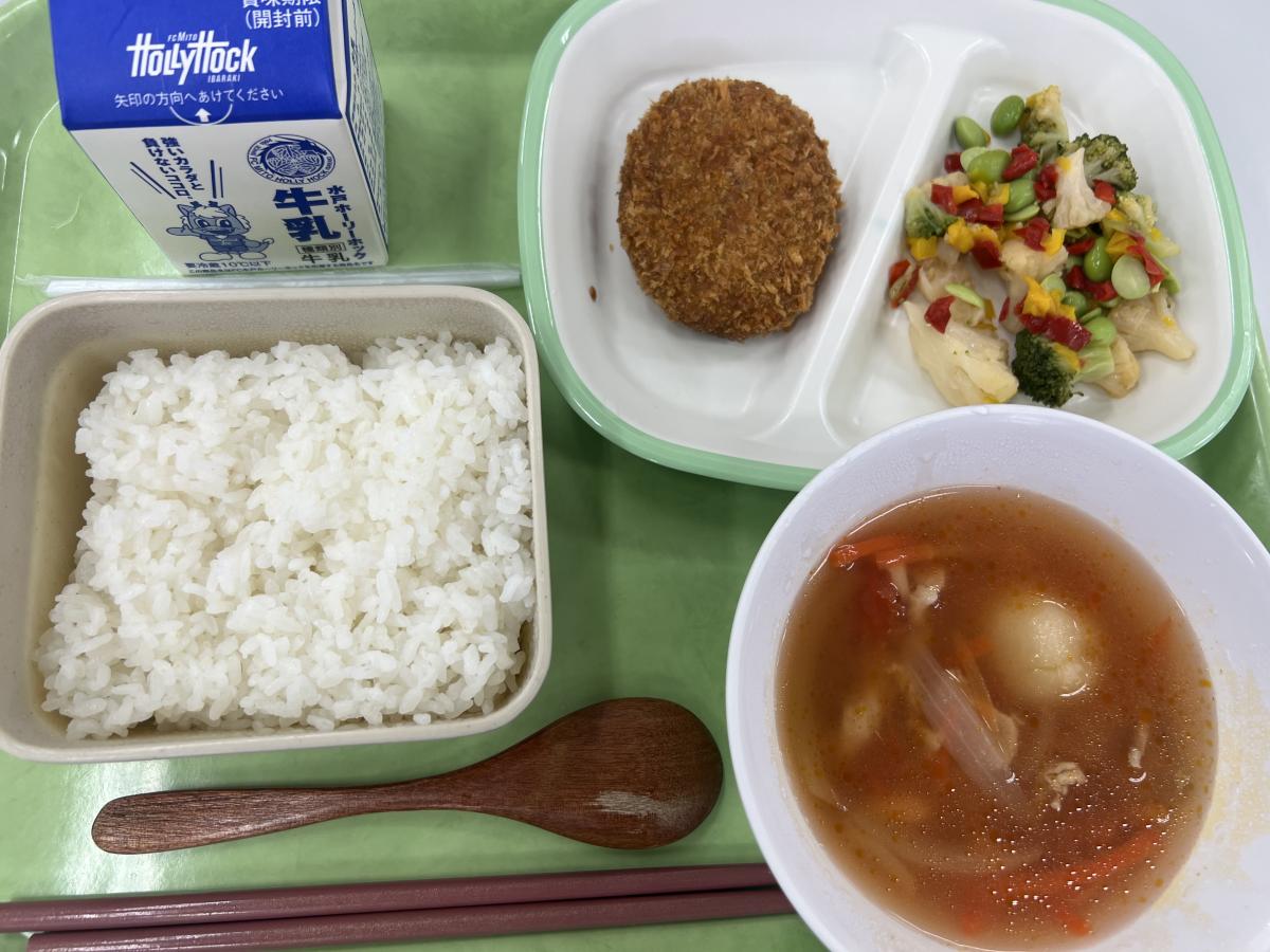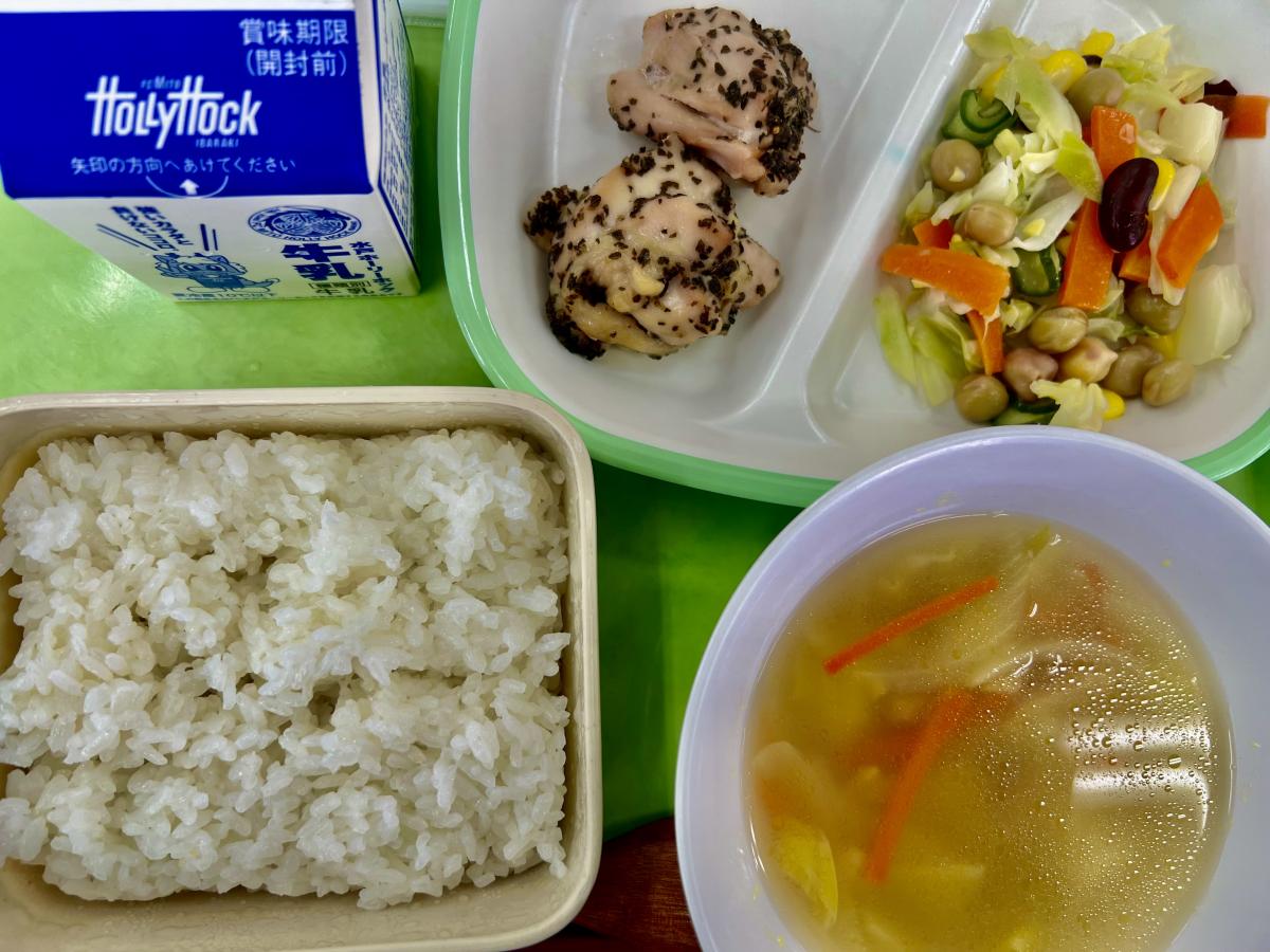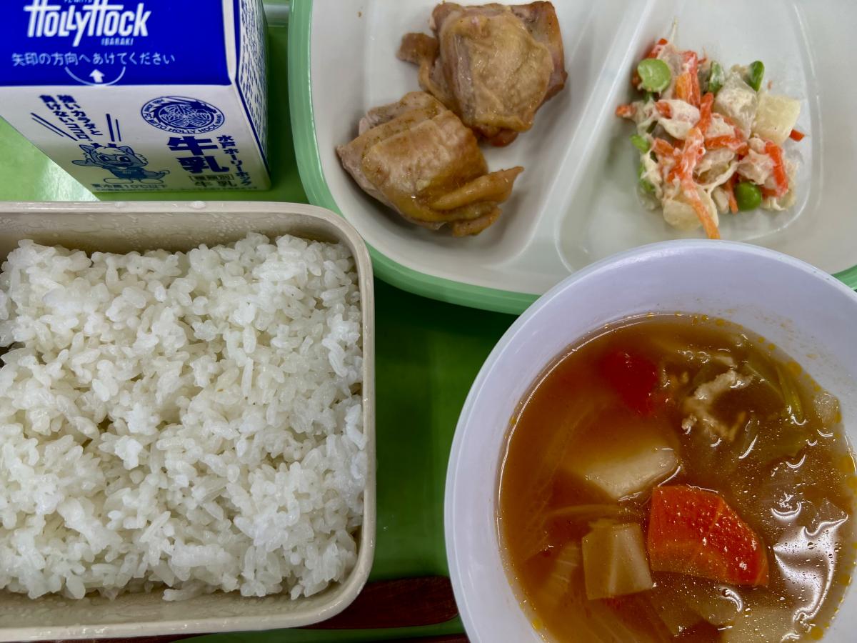 今日の給食はミネストローネなど、カラフルで温かなメニューで、美味しくいただきました。
