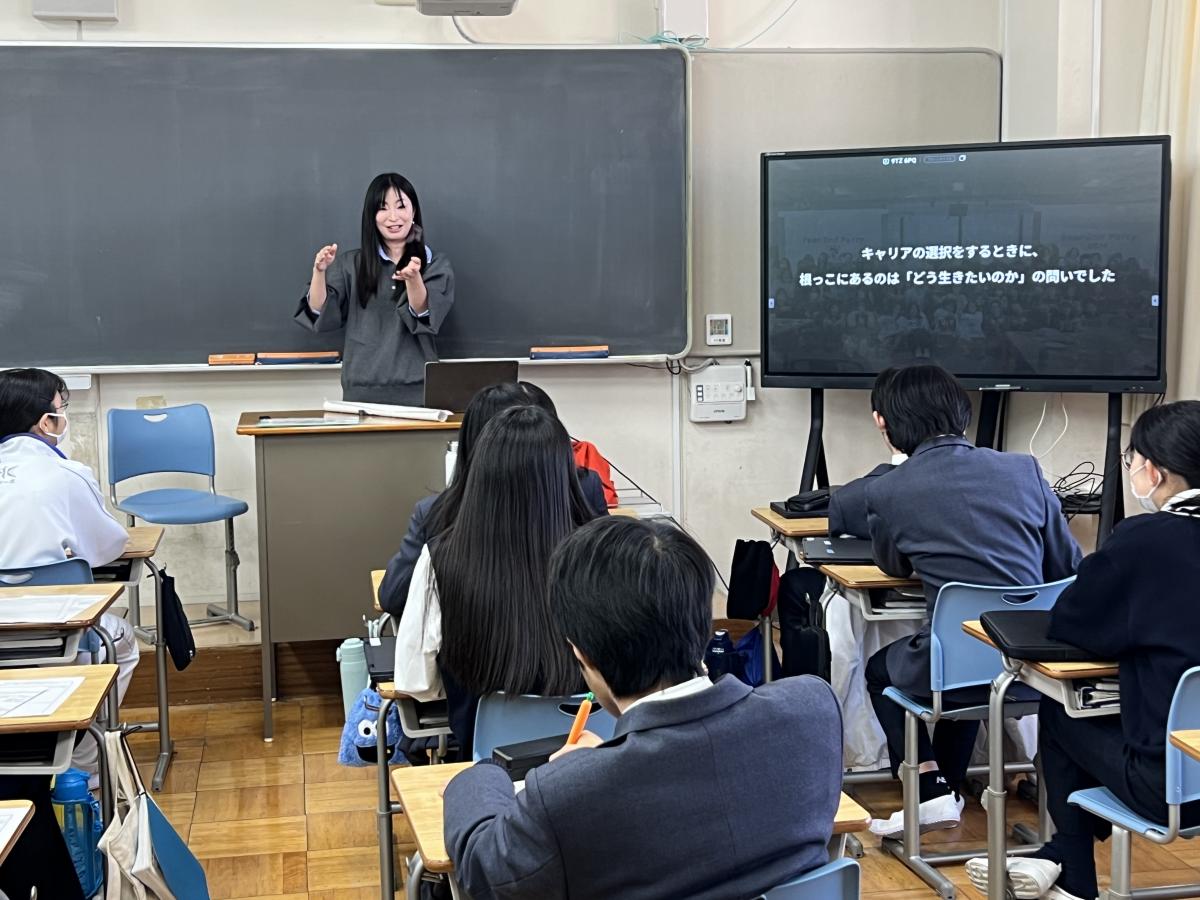 今日は、高2と中2を対象に、各業界のトップランナーとして活躍されている10名の社会人をお招きして「キャリア探究対話」を開催しました。生徒たちは、特に興味・関心のある2名の講師を選んで受講。あと3か月余りで中高の最高学年となる中、自分の将来の生き方・働き方等について探究する良い機会となりました。