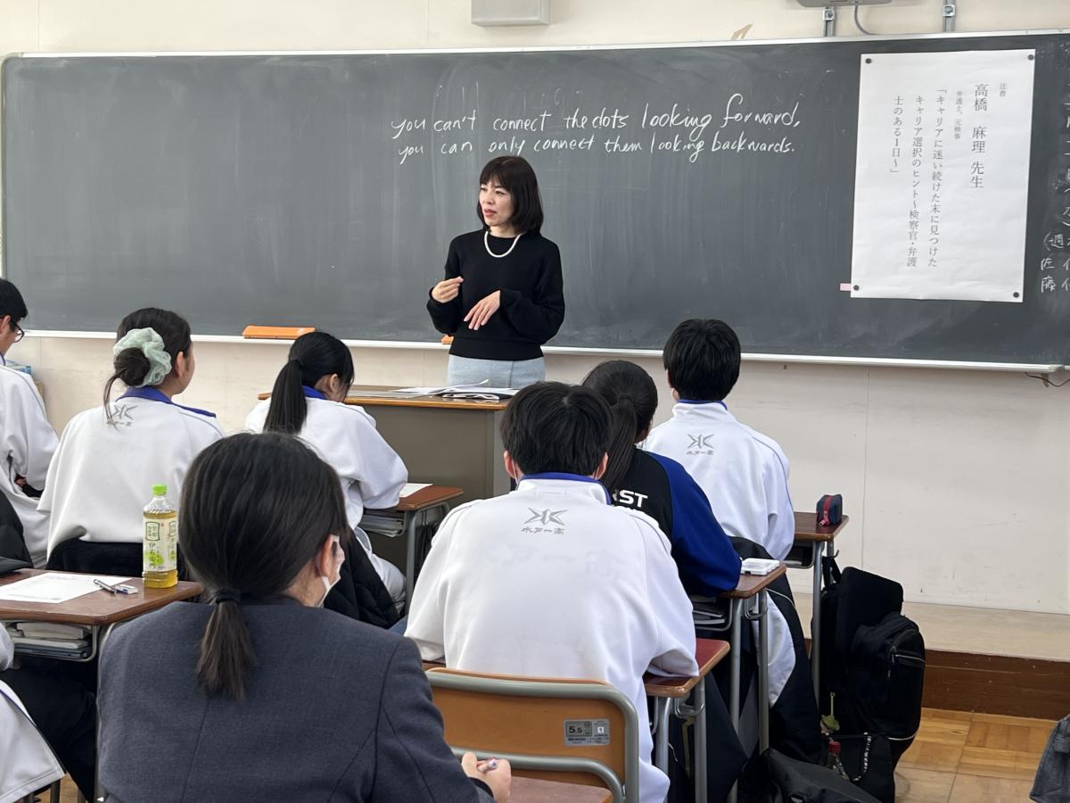 それぞれの先生から、ご自身のこれまでの歩み、挑んでいる社会課題、今後の展望等について、具体例を交えながら分かりやすくお話いただくとともに、未来を担う生徒たちに、リーダーとしての心構えなど熱いメッセージを頂戴しました。お忙しい中、ご来校くださいました先生方に、心より感謝いたします。