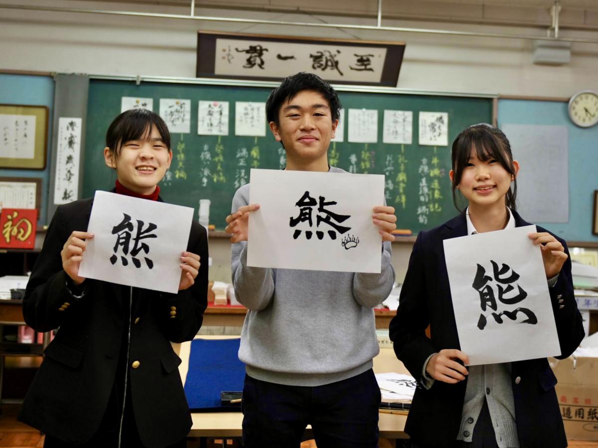 今日は、漢字の日。日本漢字能力検定協会が制定したもので、12(いいじ)12(いちじ)の語呂合わせだそうです。例年この日に清水寺にて発表される今年の漢字は「熊」。本校では今のところ実物は目撃されていませんが、字としては高校の書道部員たちがさっそく書いていました。
