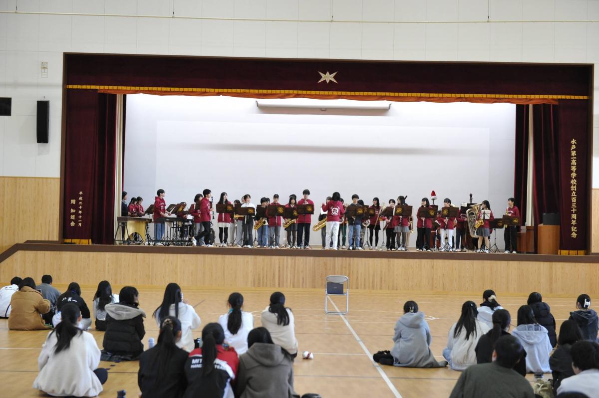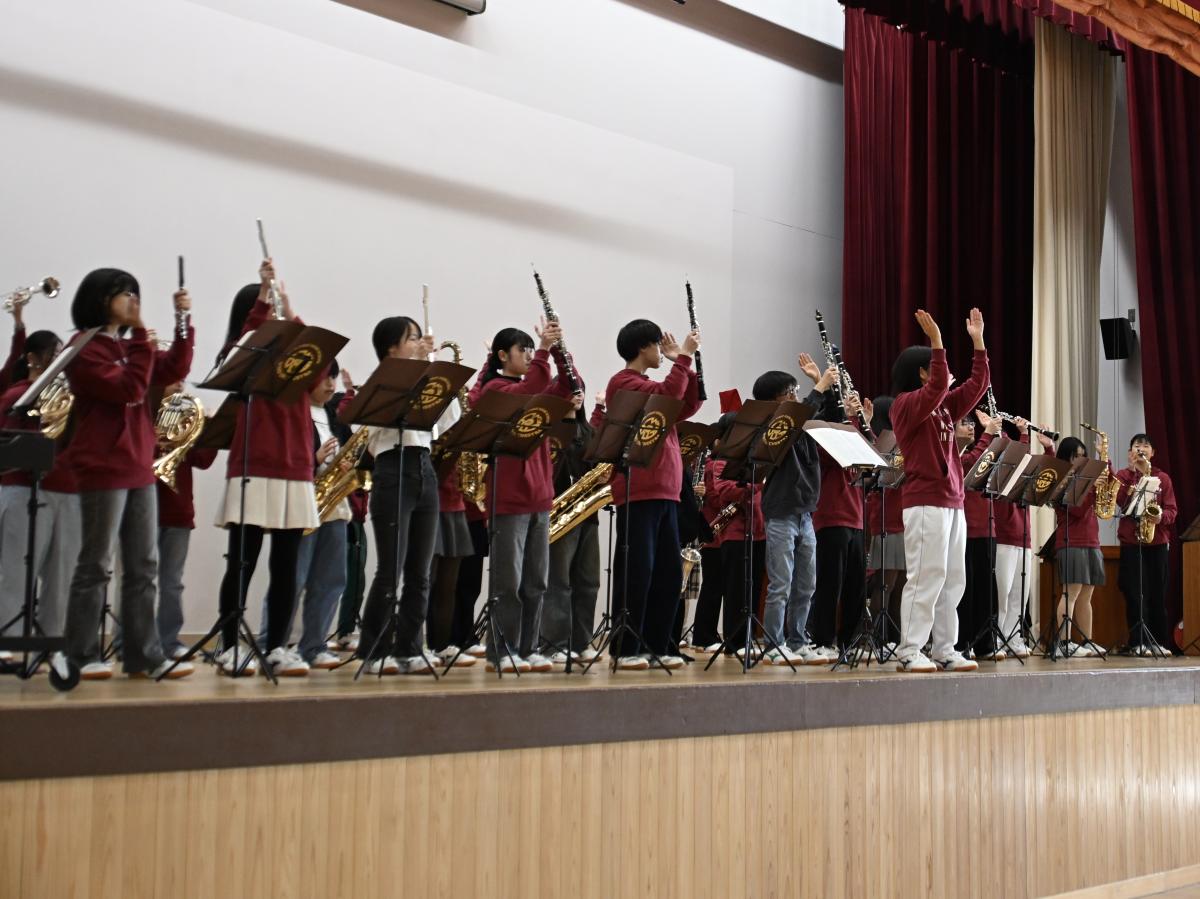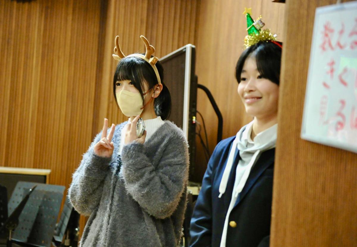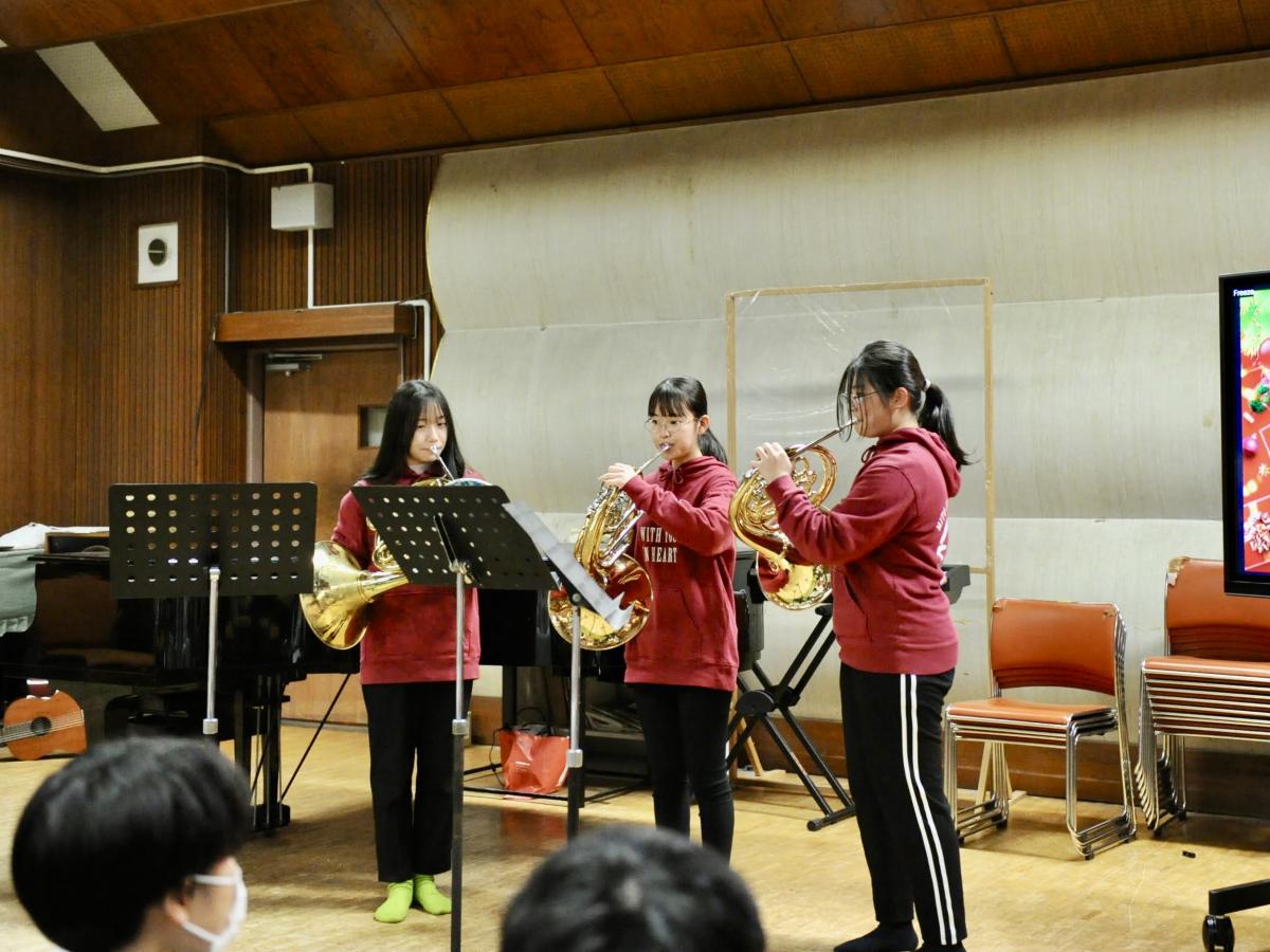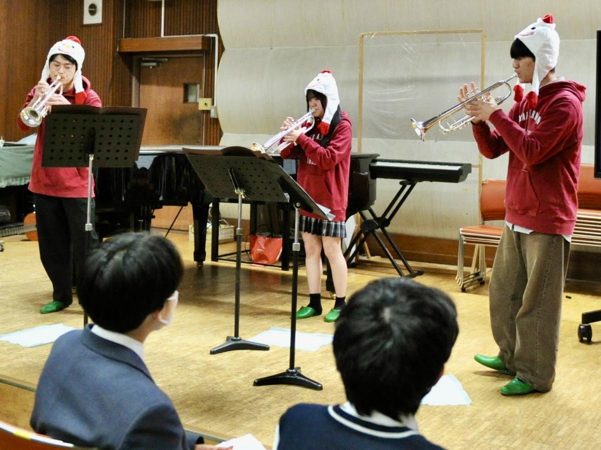 今日の昼休み、吹奏楽部が体育館でクリスマスコンサート(全体ステージ)を行いました。