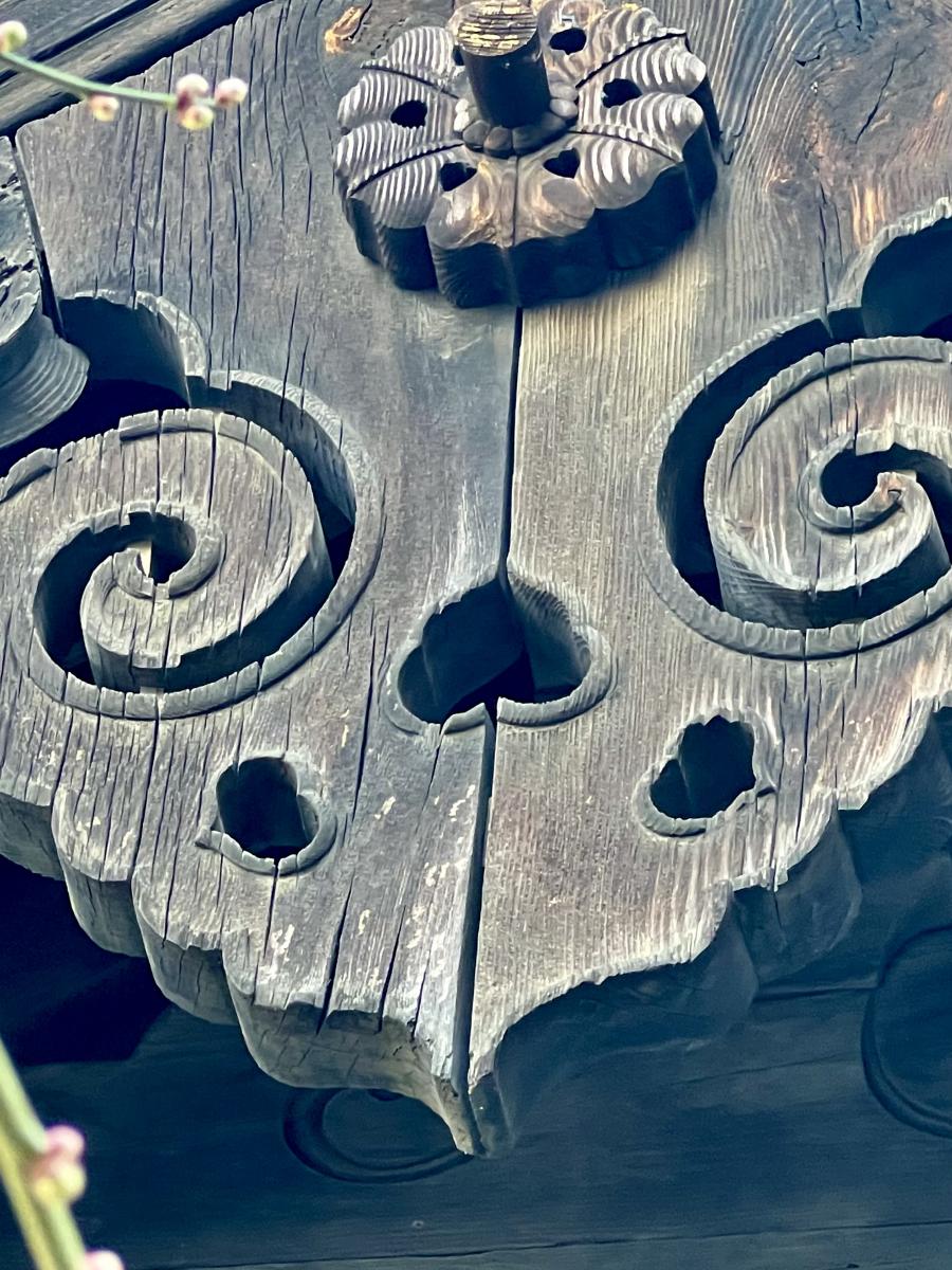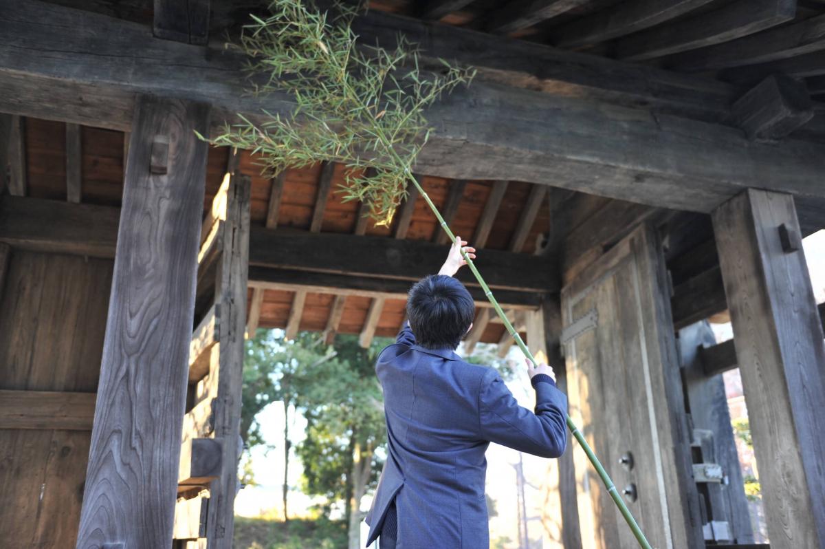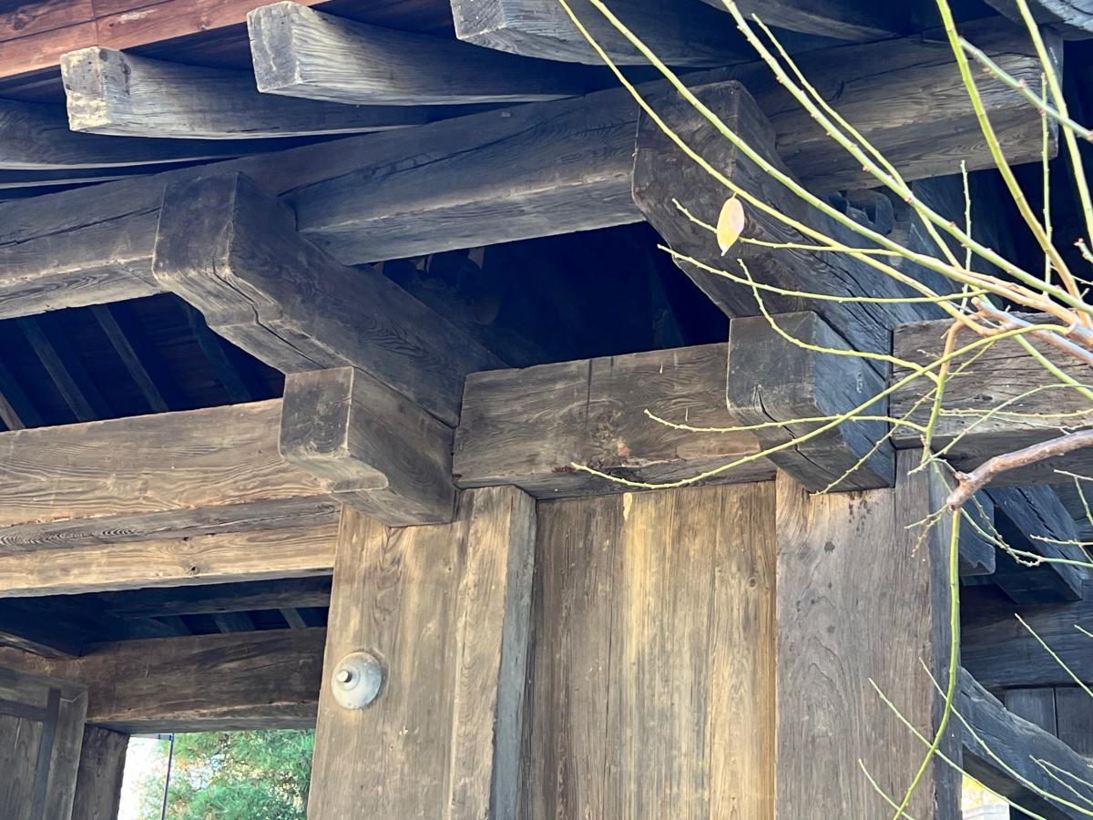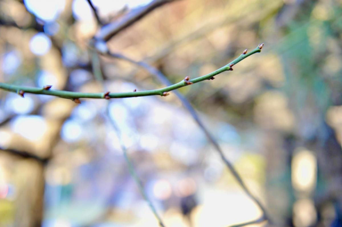 なお、薬医門脇の梅の木も最後の一葉が舞い散り、本格的な冬の到来を感じさせます。一方、枝には蕾がたくさん付いていました。今は固く小さな蕾ですが、寒さに耐えつつ徐々に膨らみ、香しい花を咲かせることでしょう。