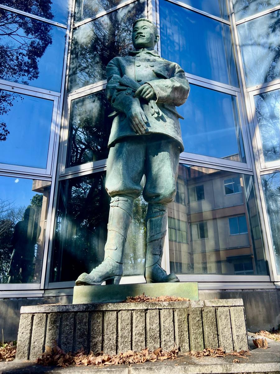 今日は、飛行機の日。1903年のこの日に、ライト兄弟が人類初の有人動力飛行に成功したことを記念するものです。米国のライト飛行学校等で学び、1913年(大正2年)に日本の空に羽ばたいたのが、武石浩玻。 来年の学苑祭テーマ「天翔る」を地で行く、水戸一高(旧制水戸中学)が誇る卒業生です。校内には彼の銅像のほか、飛行機について探究した成果をまとめた大著「飛行機大全」が残されています。