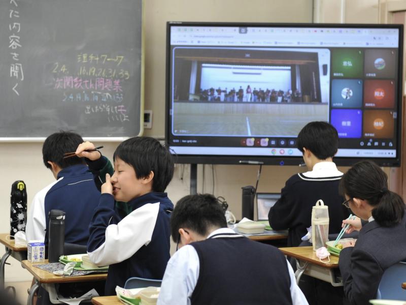 中学の教室にもオンラインで生中継され、給食をとりながら演奏を楽しむことができました。