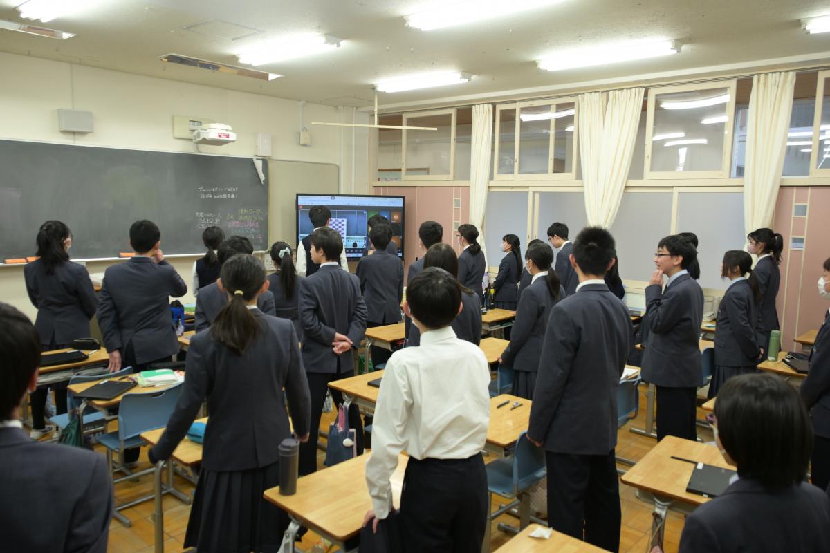 今日は、今年の最後の授業日。最後の時間に、12月の定例生徒集会と休業前集会(校長講話)をオンラインで行いました。定例生徒集会では、演劇部、美術部、水泳部、バレーボール部、個人(読書感想文・作文コンクール、科学の甲子園)への表彰伝達がありました。