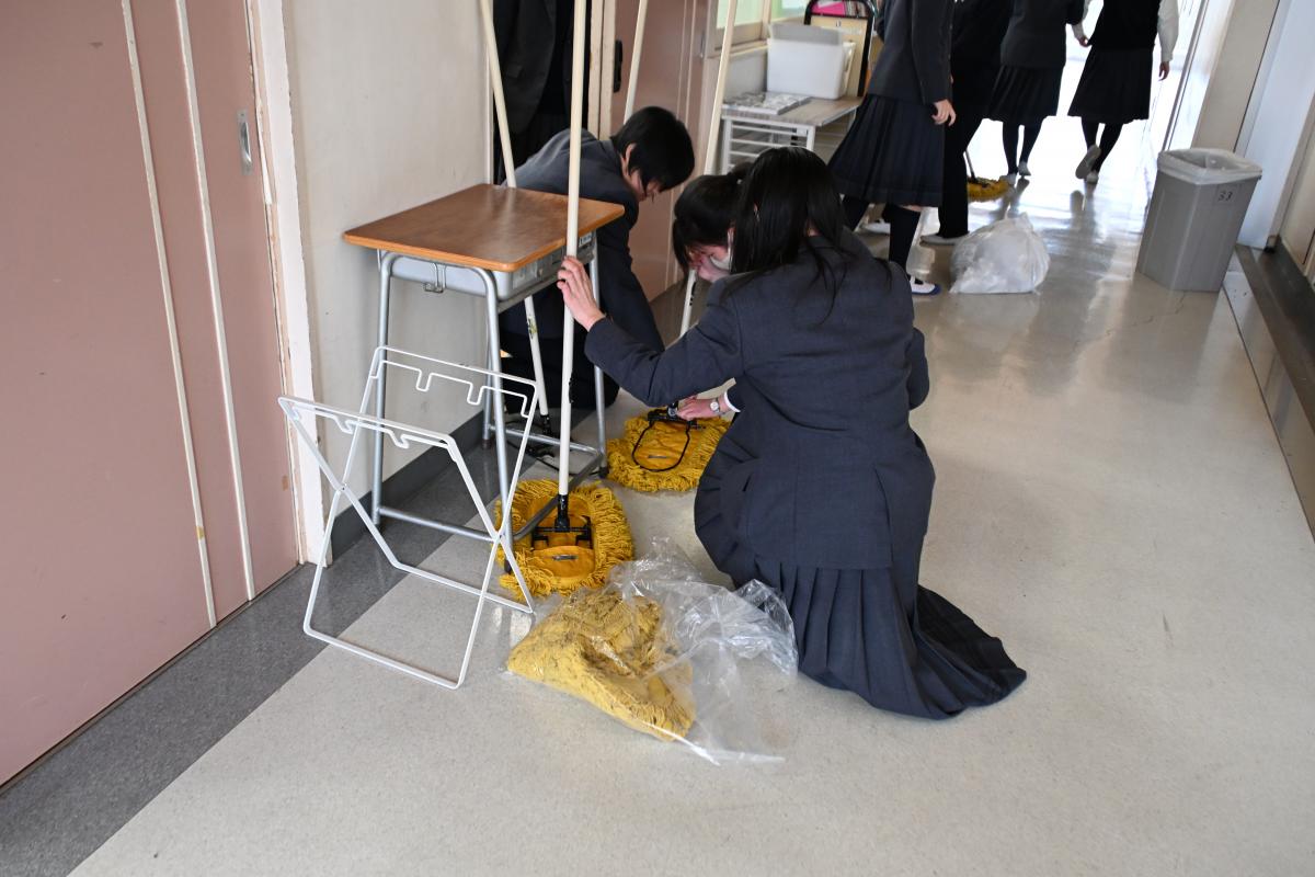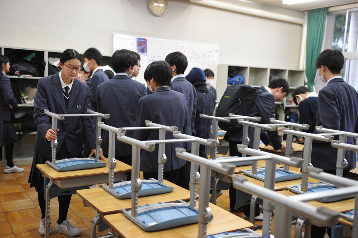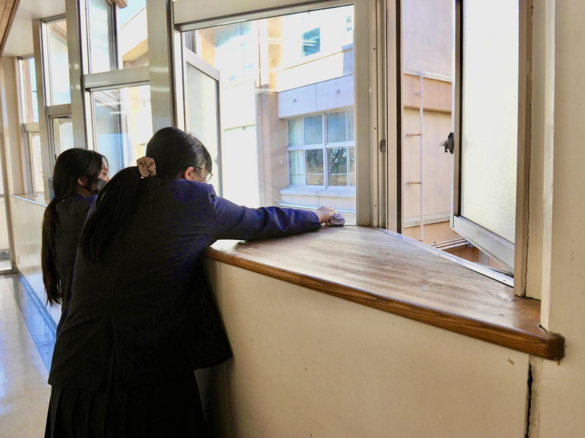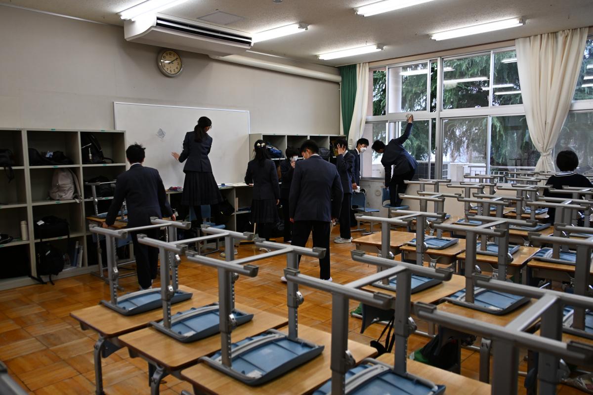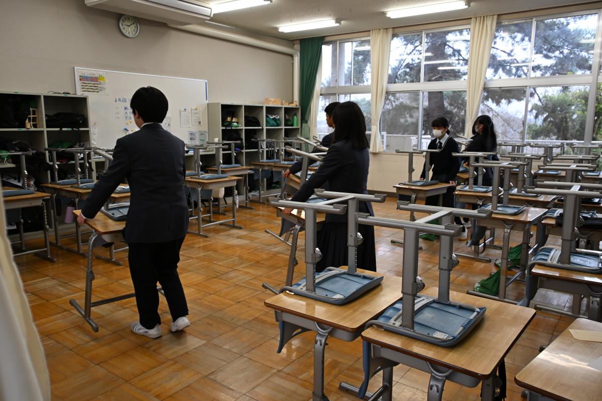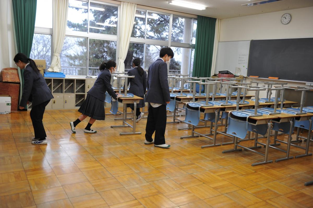 今日は授業を2時限で終え、明日の入学者選抜検査に向け、大掃除、教室準備等を行いました。生徒たちは、自らの受検生時代を思い出しつつ、後輩たちのために心を込めて作業に励んでいました。