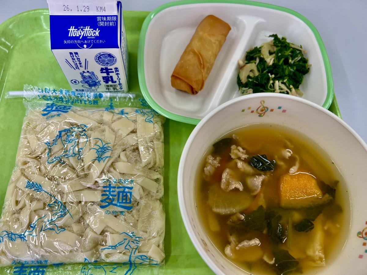 今日の給食は、「日本の味めぐりシリーズ」の一環として、山梨県を取り上げました。温かく、具沢山のほうとうや、からし和え等を美味しくいただきました。