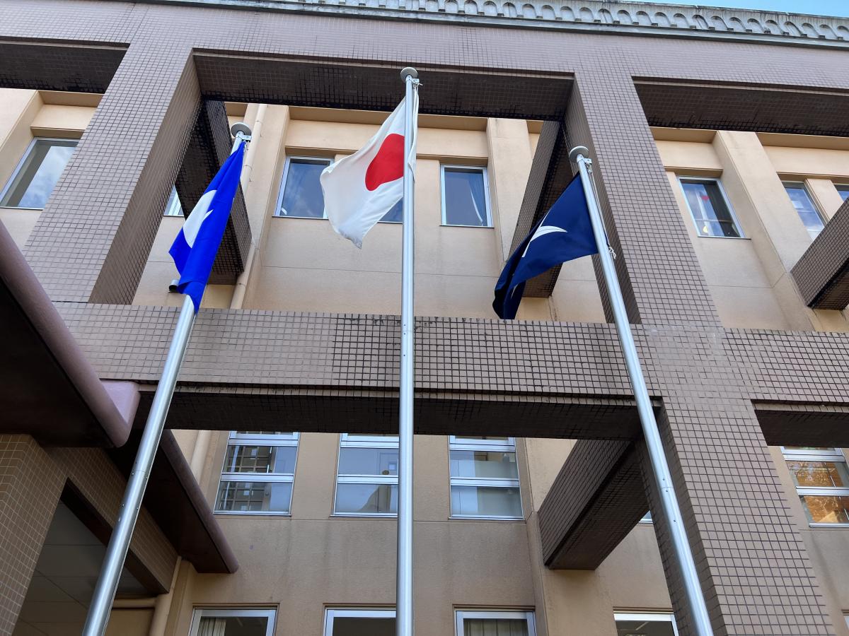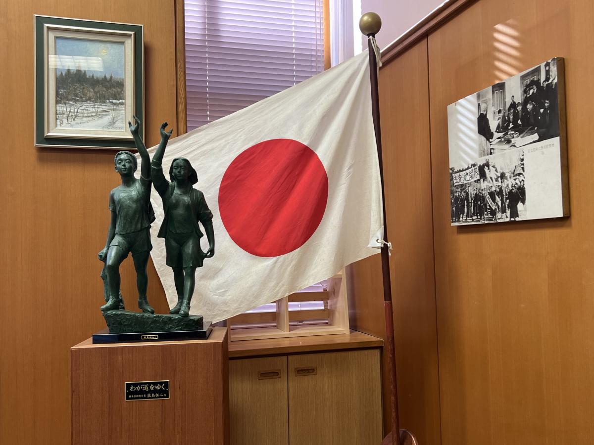 本校では、校舎正面と応接室に国旗を掲揚しています。