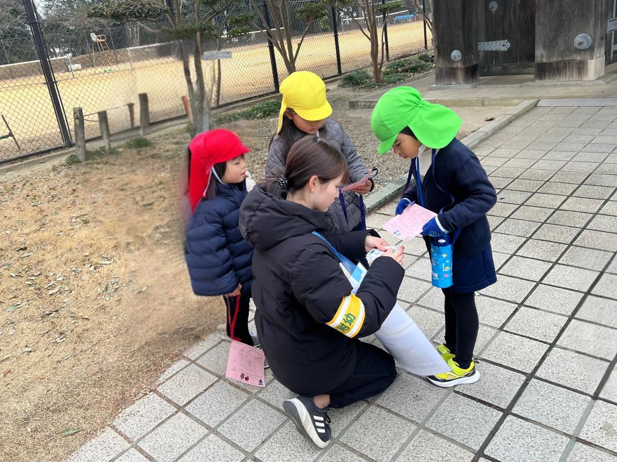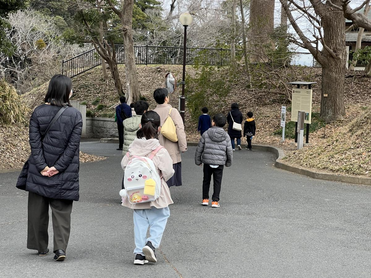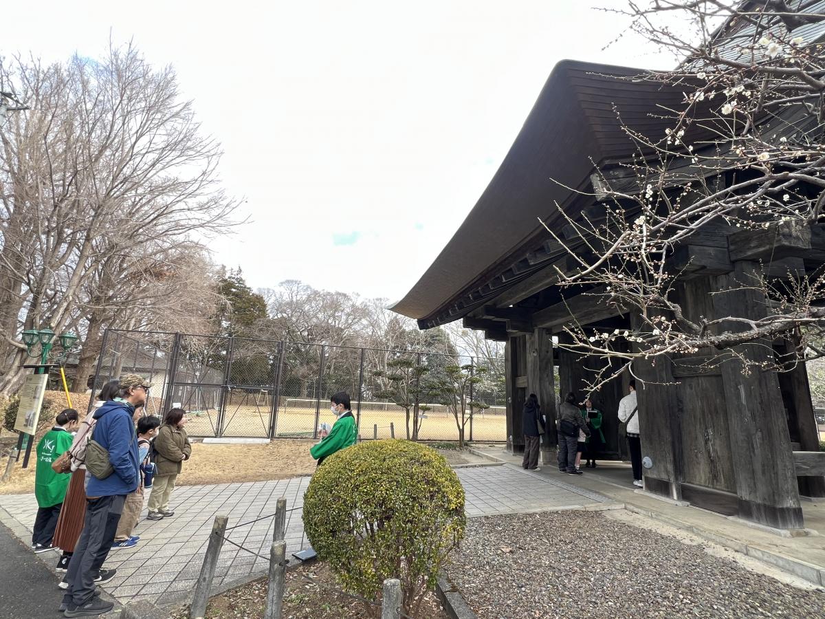小春日和の暖かさとなった今日、茨城大学教育学部附属幼稚園の皆さんが、親子ウォークラリー(みとがくさんぽ)で来校されました。園児たちは、「高校生はテスト中だから、静かに行動しようね」との園長先生の指導をきちんと守りつつ、「400歳」の薬医門を興味津々で見学していました。