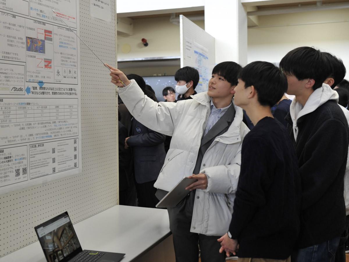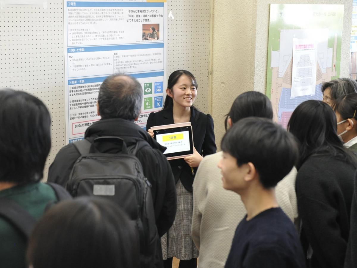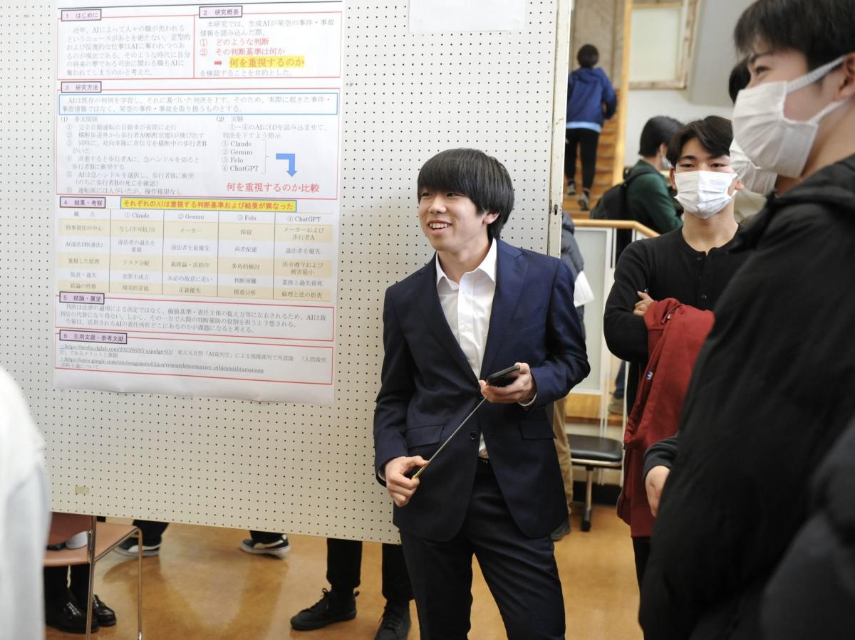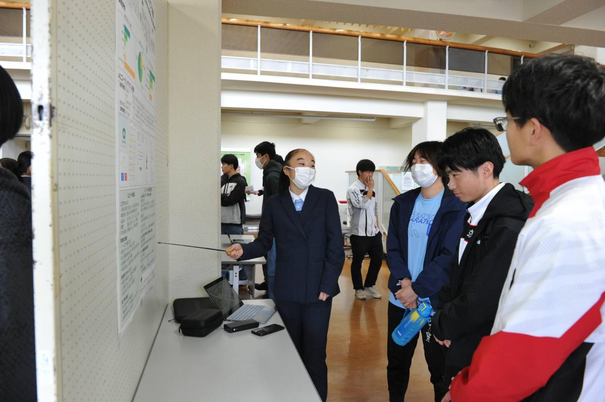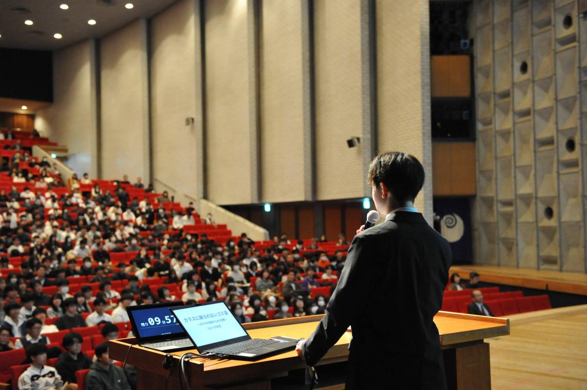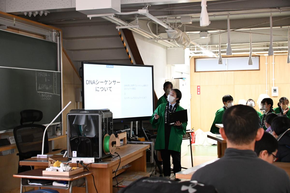 高2の探究成果の発表を中心に、中学1・3年の特別発表、校外で活躍したグループの発表を行い、最後、東北大学大学院の酒井聡樹先生より、具体例を交えた詳細な講評をいただきました。発表した生徒はもちろん、多種多様な探究活動に触れた生徒たちにとって、大学進学後も見すえた今後の探究活動に資する、良い機会となりました。