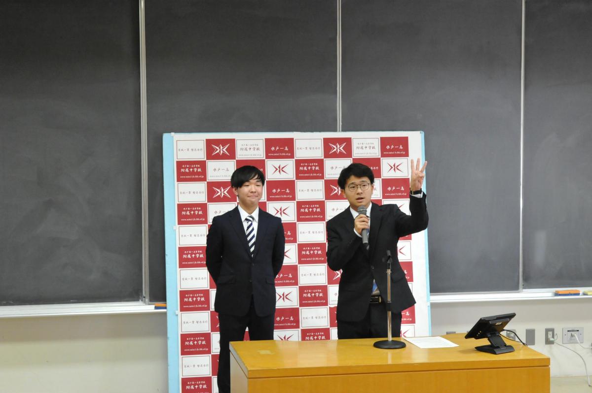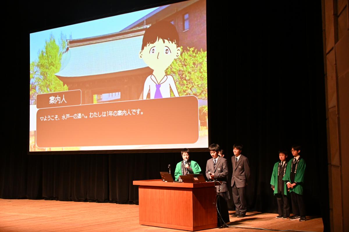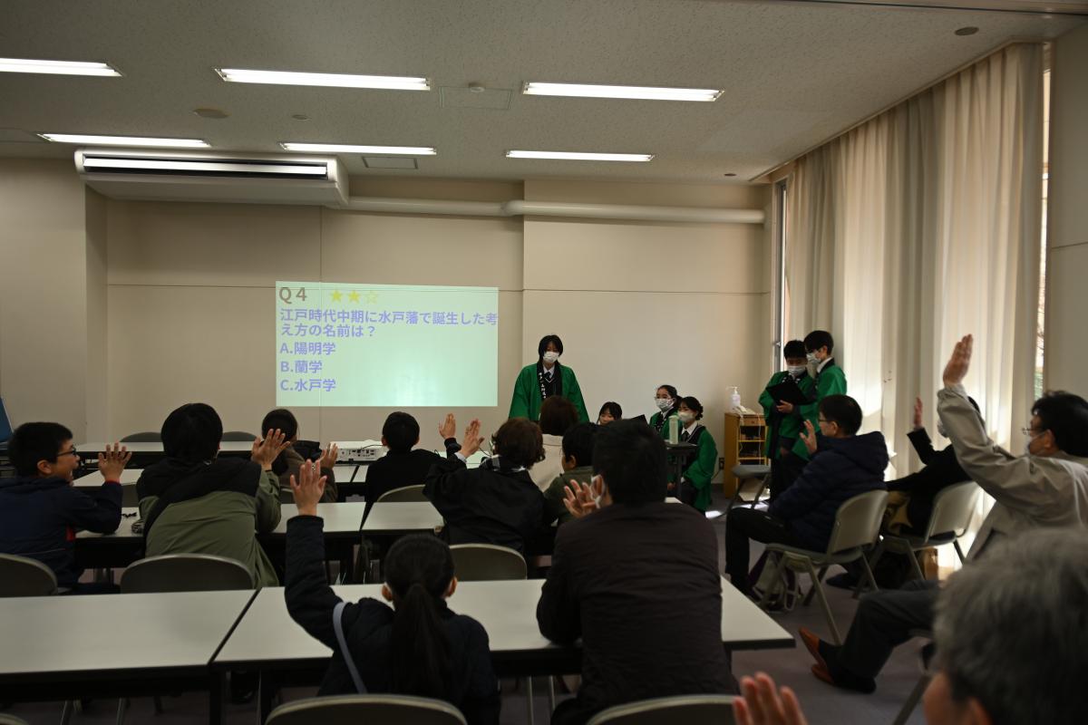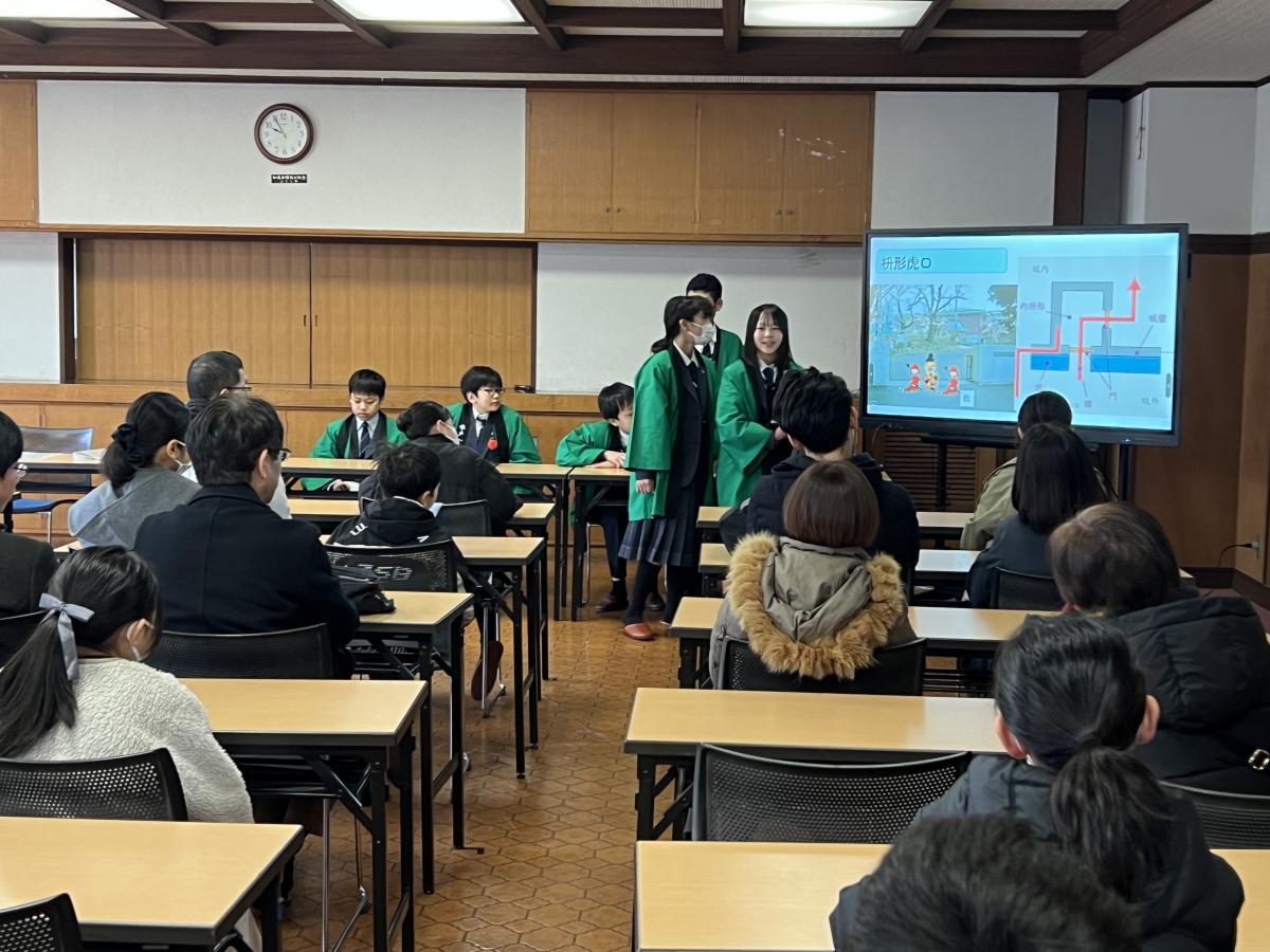 本日午前中、校内ガイドツアー「水戸一の梅まつり」を開催しました。中1の案内で校内を一周するとともに、3つの部屋でクイズを織り交ぜたスライドによるプレゼンテーションを行う形で実施しました。