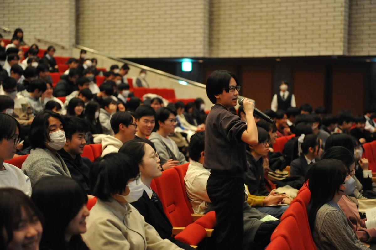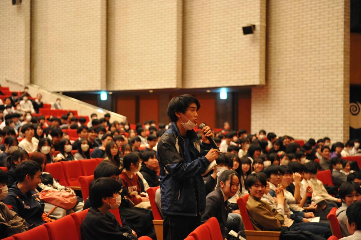 また、講演の大部分は壇上ではなく、フロアで、生徒と目線をあわせ、ときにユーモアも交えながら行われたため、生徒たちは特に先生に親しみを感じたようです。
