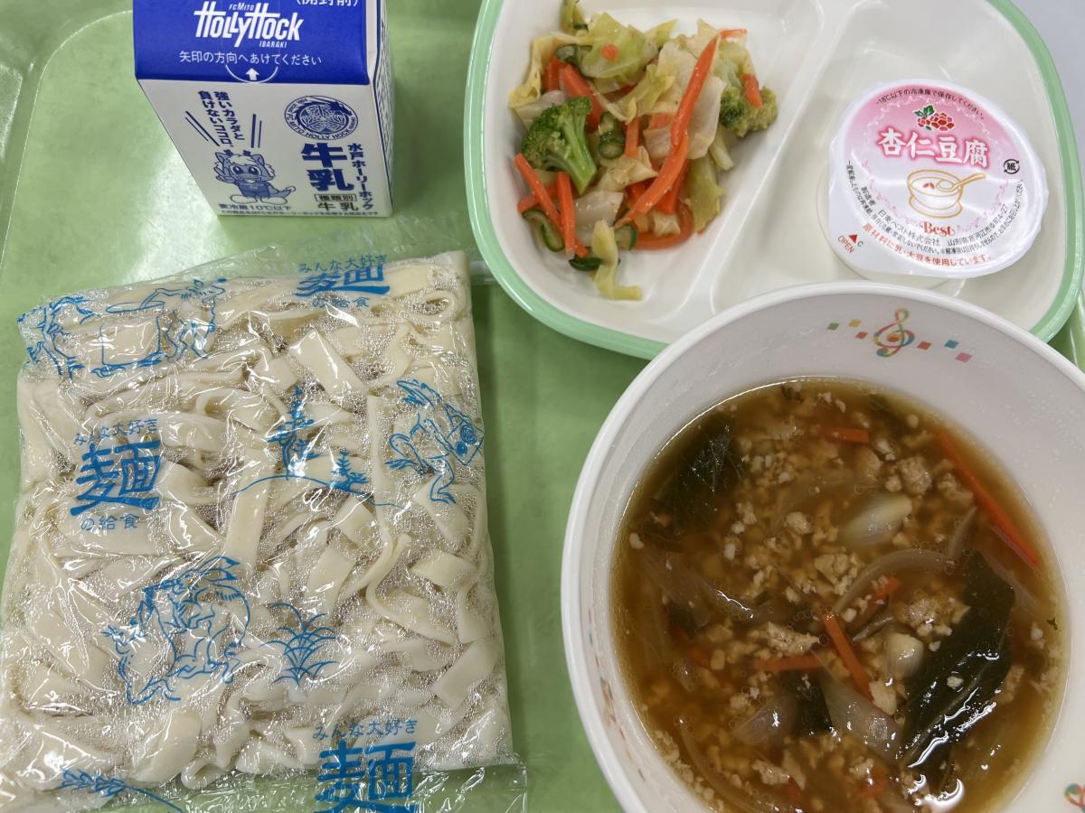 なお、今日の給食は、世界の味めぐりシリーズの一環として、中国を取り上げました。普段からよくいただく中華料理ですが、この日は珍しいビャンビャン麺(陝西省・西安地方の平打ち混ぜ麺)も供されました。
