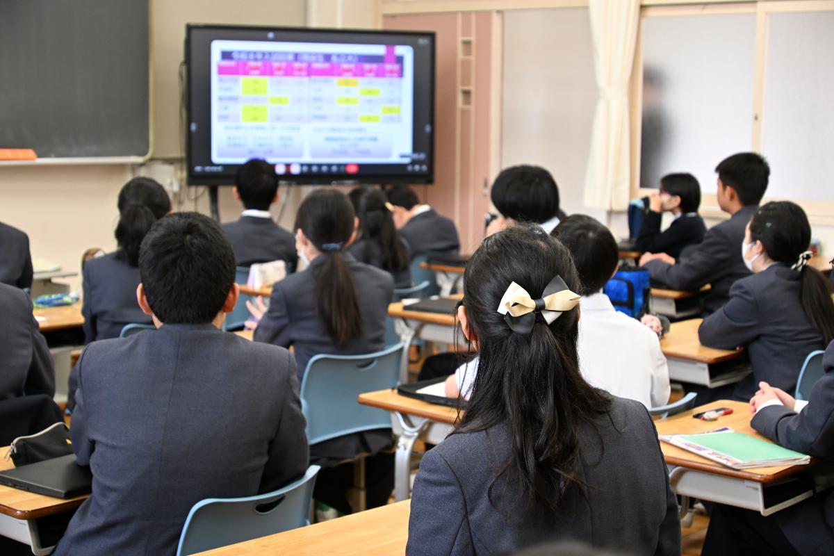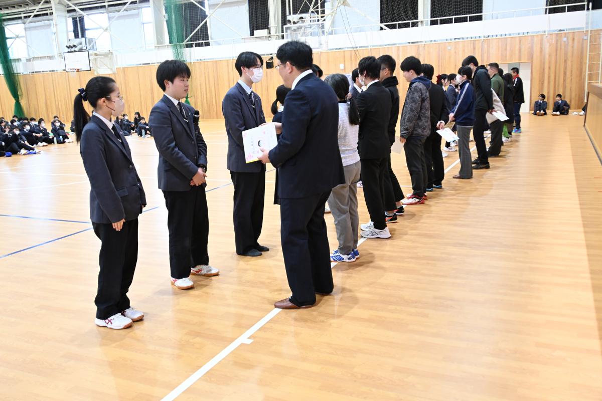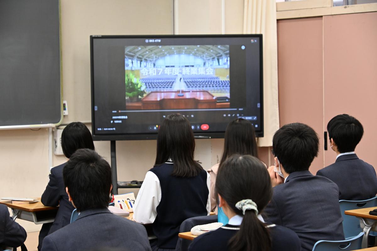 今日は、終業集会にて最後の校長講話と進路支援部長からの大学入試結果報告を行うとともに、教室等の大掃除、学級活動を実施し、令和7年度の終業を迎えました。この1年、本校の運営に多大なるご理解、ご協力をいただきました皆様方に、この場をお借りして心より御礼申し上げます。