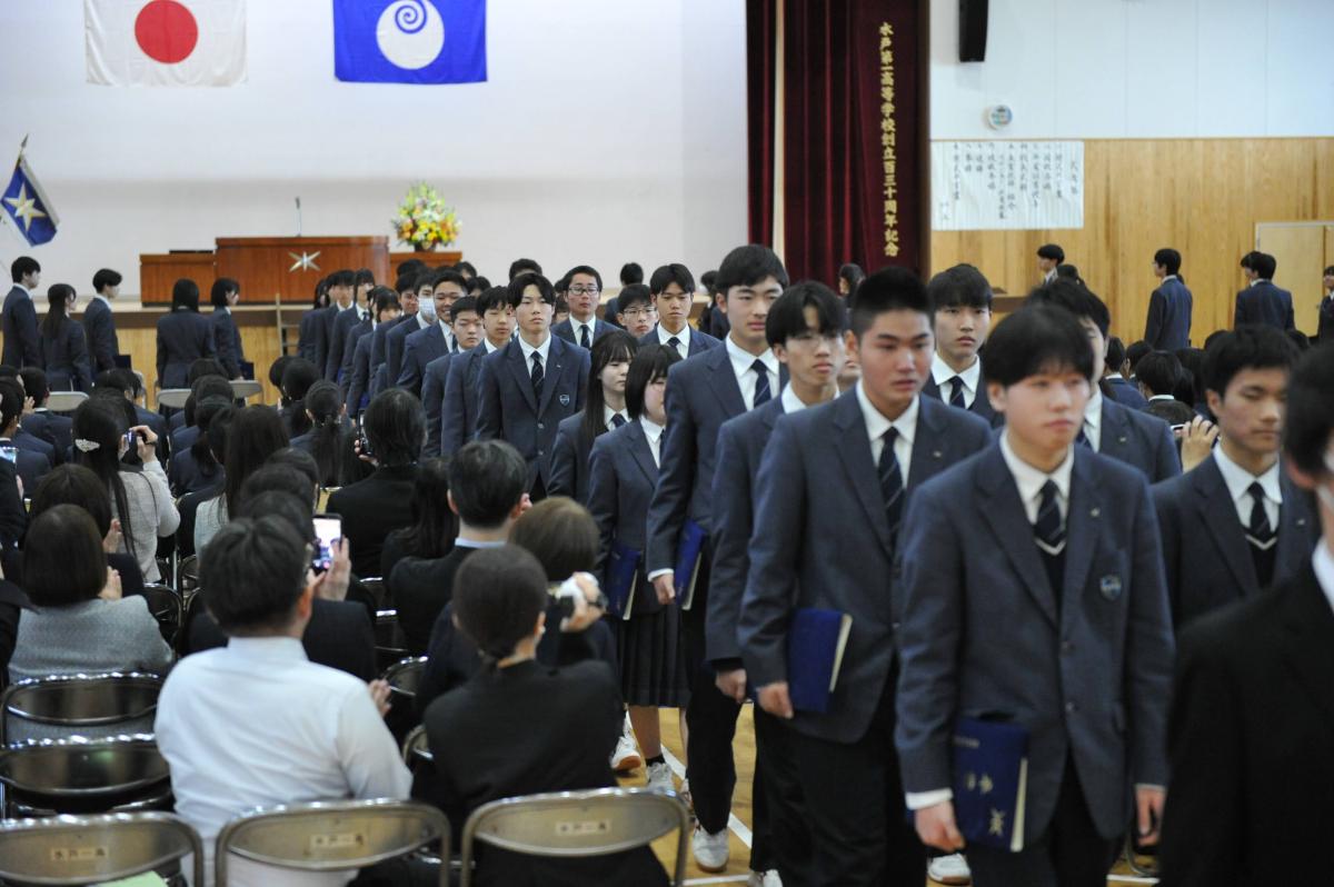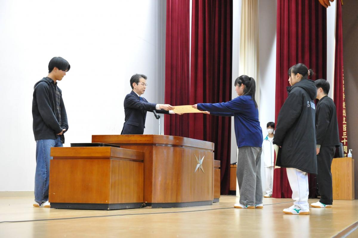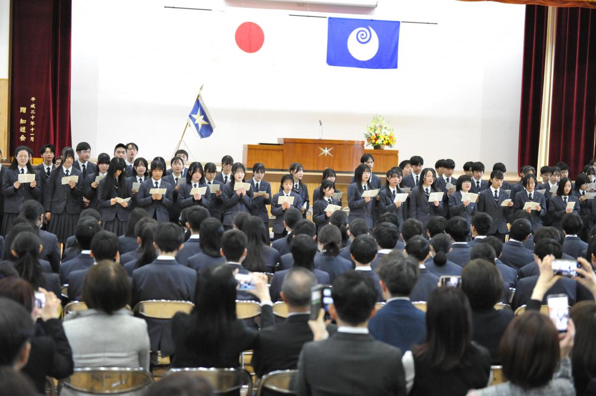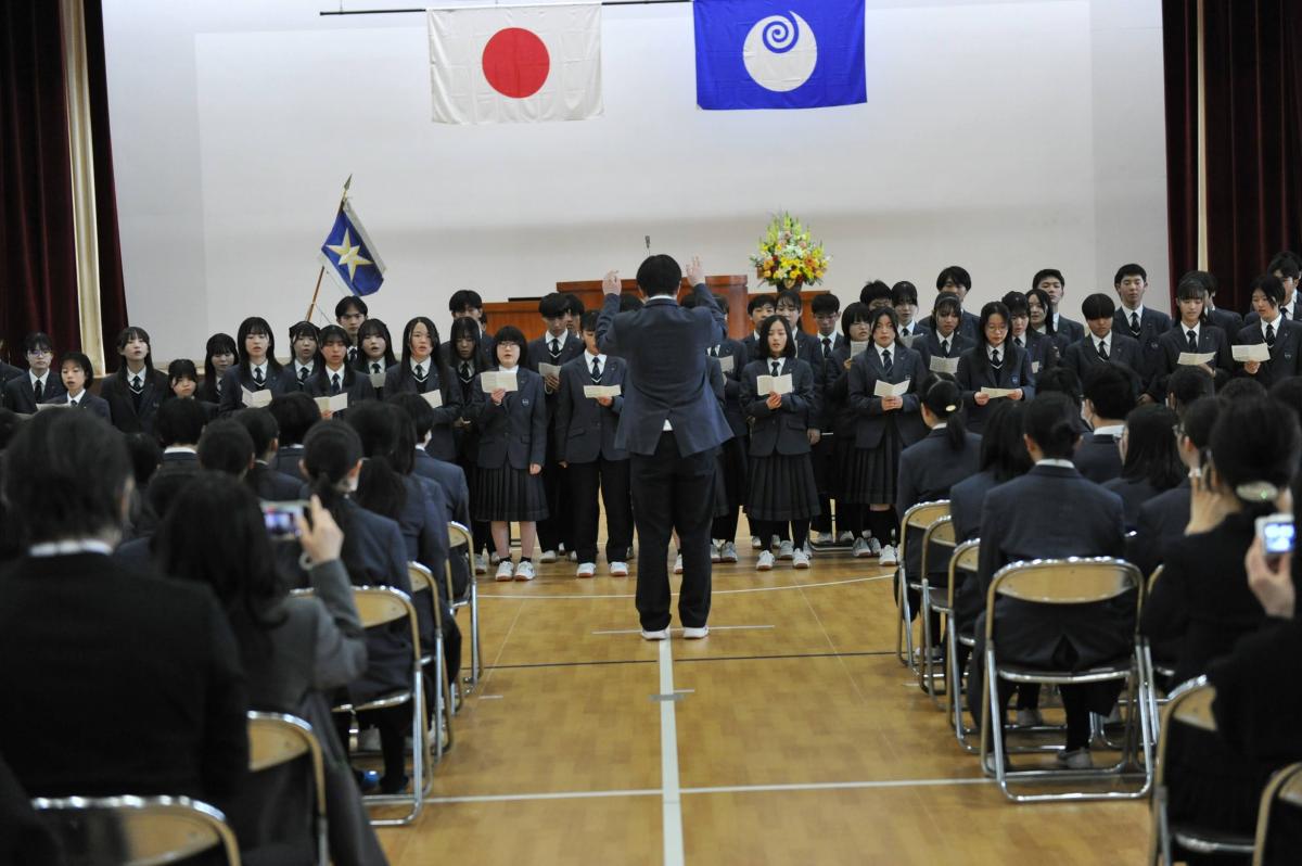 本日、令和7年度卒業式を体育館にて挙行しました。国歌斉唱、卒業証書授与、校長式辞、来賓祝辞(奨学会会長、知道会会長)、校歌斉唱、在校生からの送辞、卒業生からの答辞、卒業生合唱(RADWIMPS「正解」)斉唱の順で進行。晴れやかな笑顔あり、涙ありの思い出に刻まれる式典となりました。卒業生に対し、これまで多大なるご支援、ご協力を賜りました皆様に、この場をお借りして厚く御礼申し上げます。