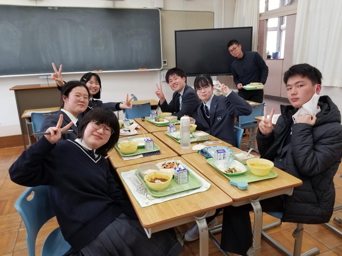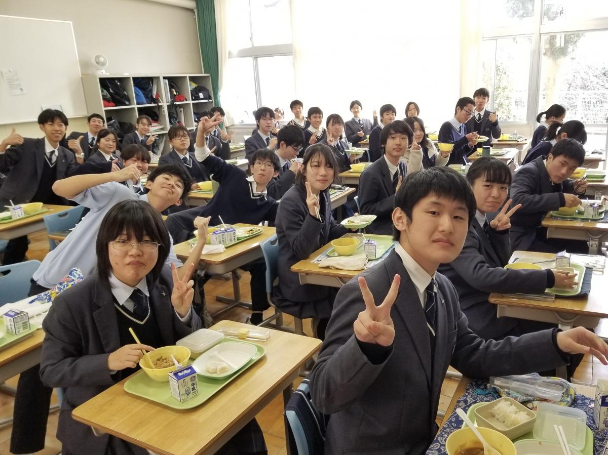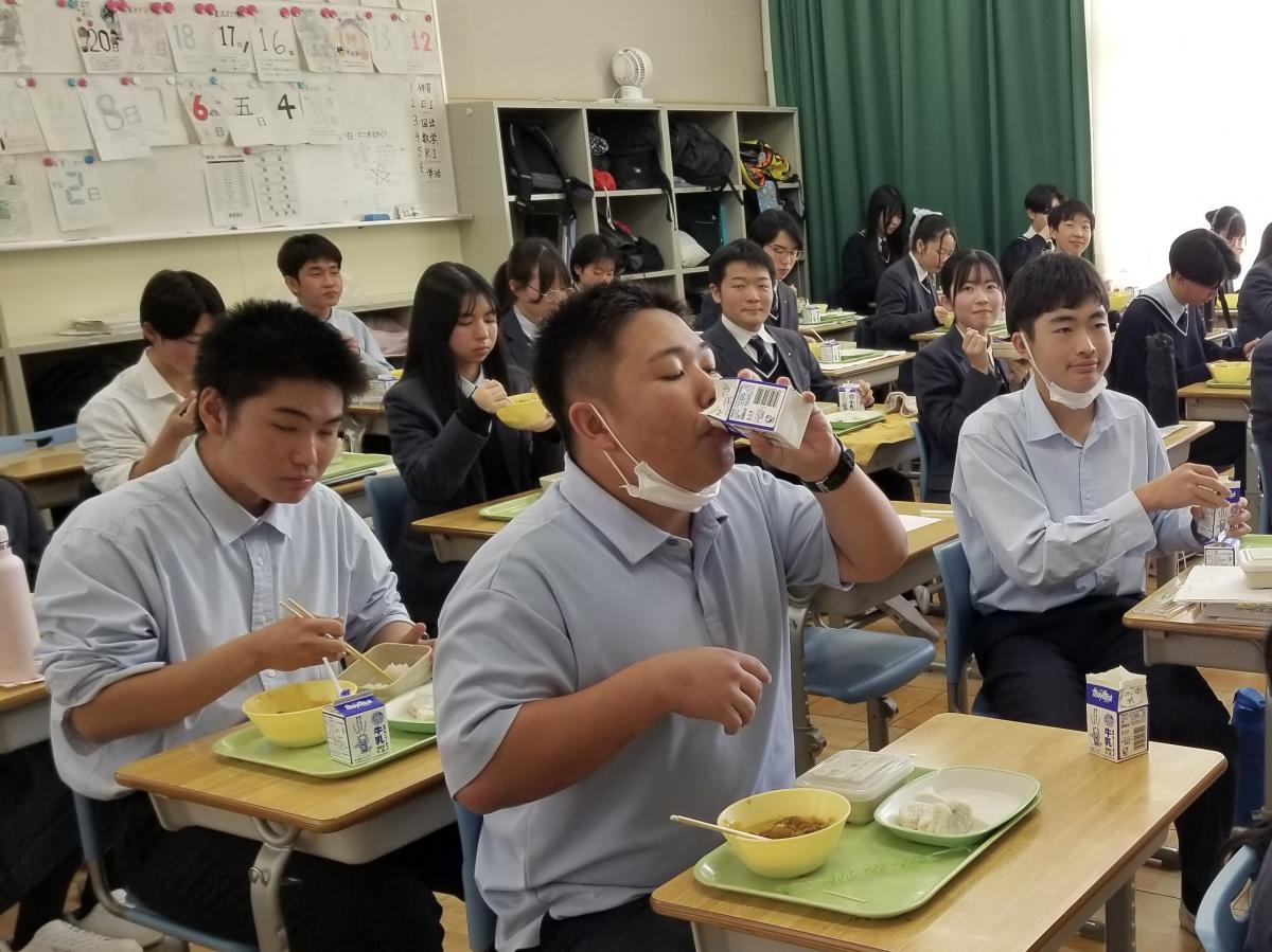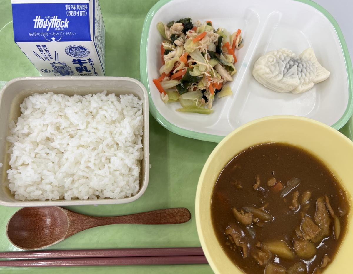 今日は、中3にとって最後の給食となりました。生徒たちは、大好きなカレーやサラダ、おやつのたい焼きをじっくりと味わっていました。